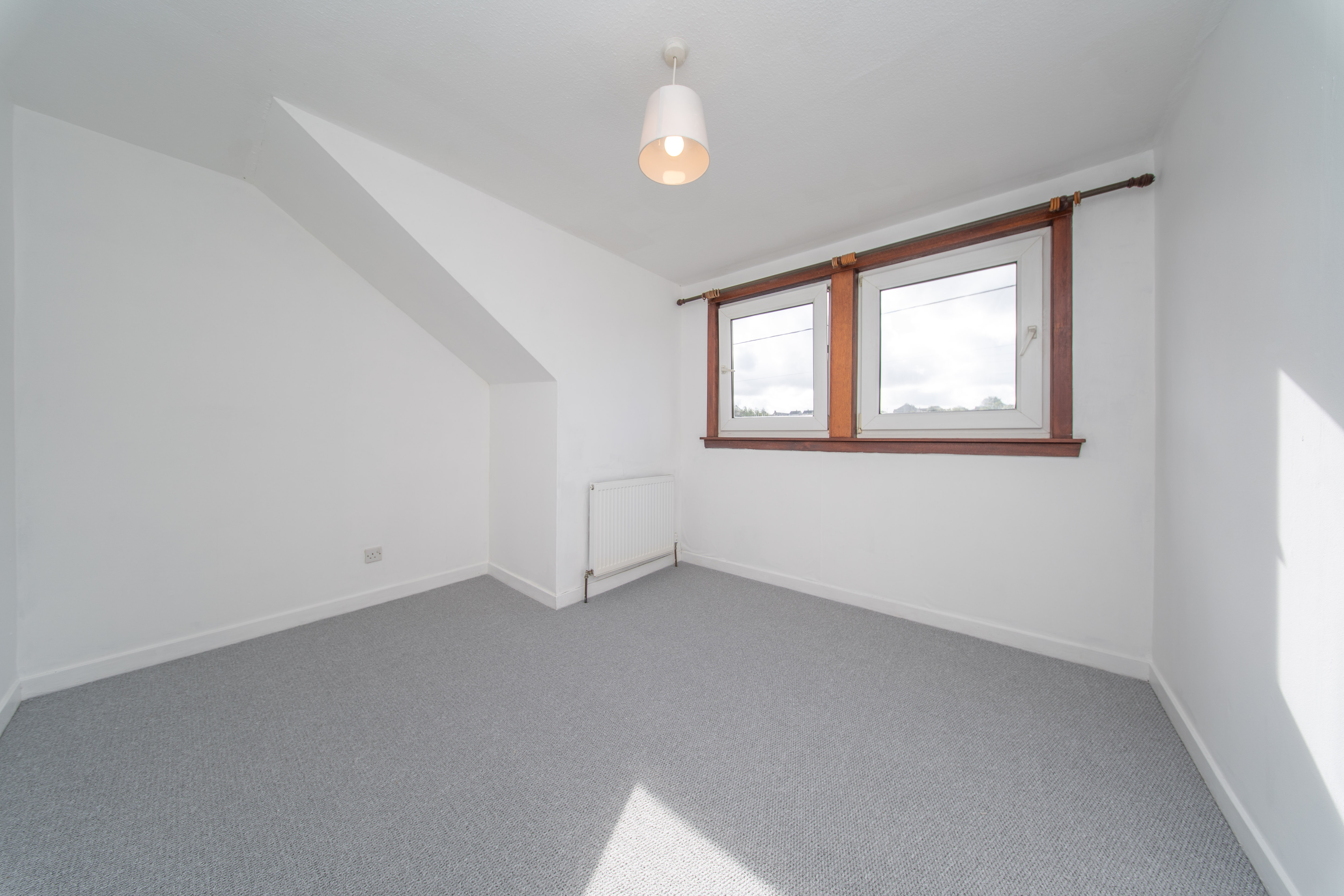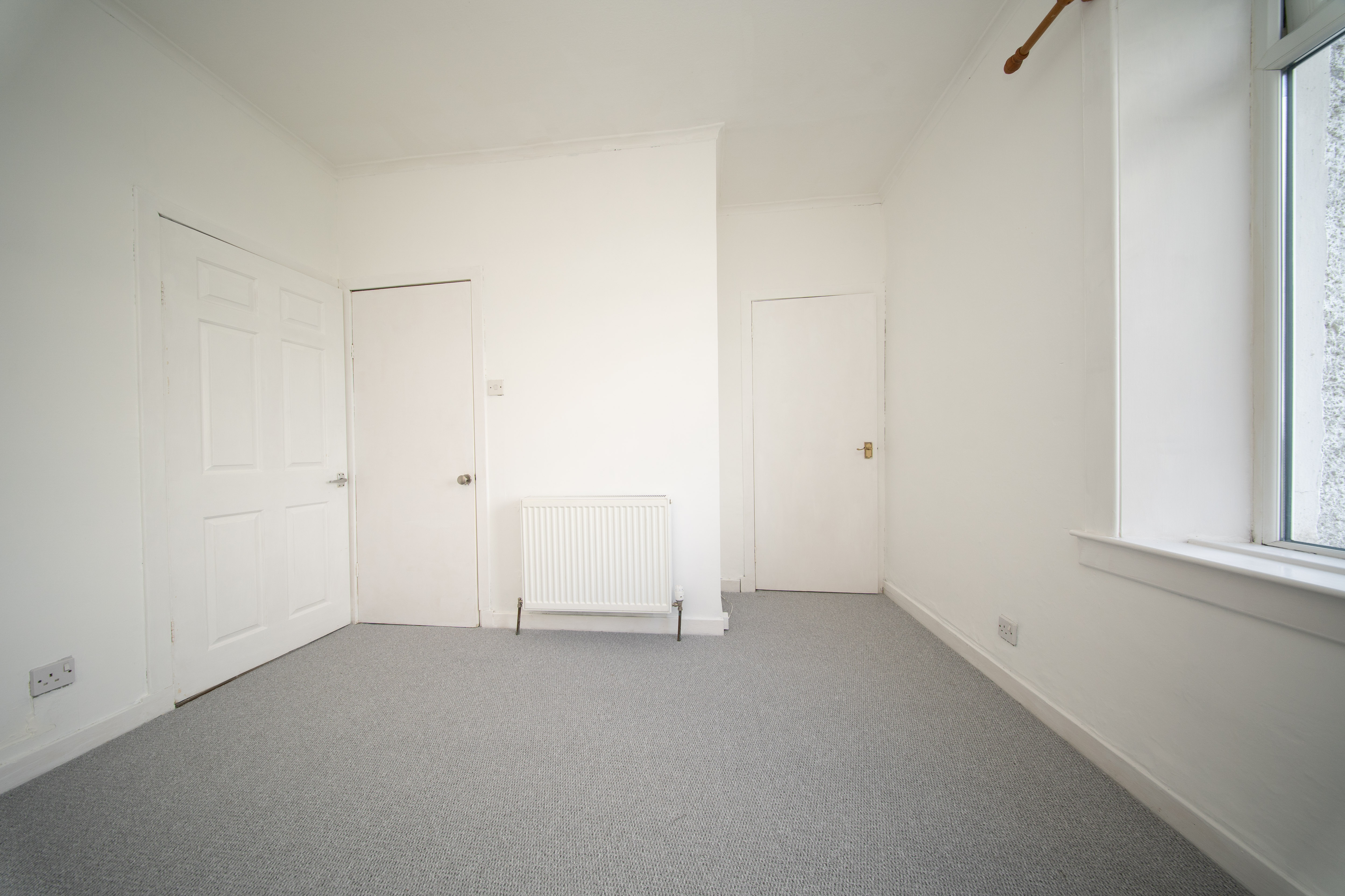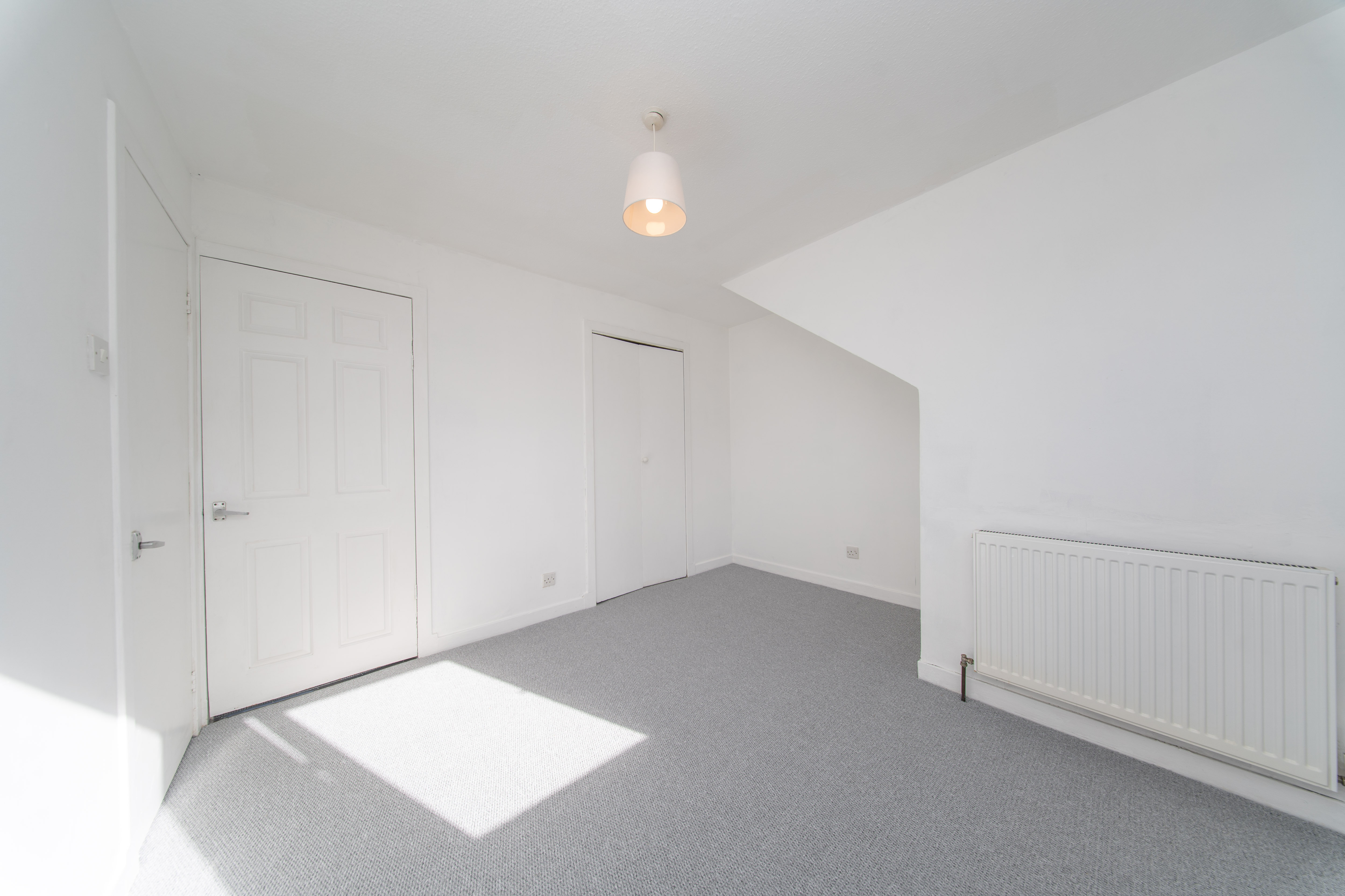 This charming room is finished with white walls and carpeted flooring, creating a fresh and welcoming feel. Two front facing windows allow natural light to flood the space, complemented by a ceiling light for additional illumination. Two built in cupboards offer generous wardrobe and storage space, while a radiator and power points ensure comfort and convenience.