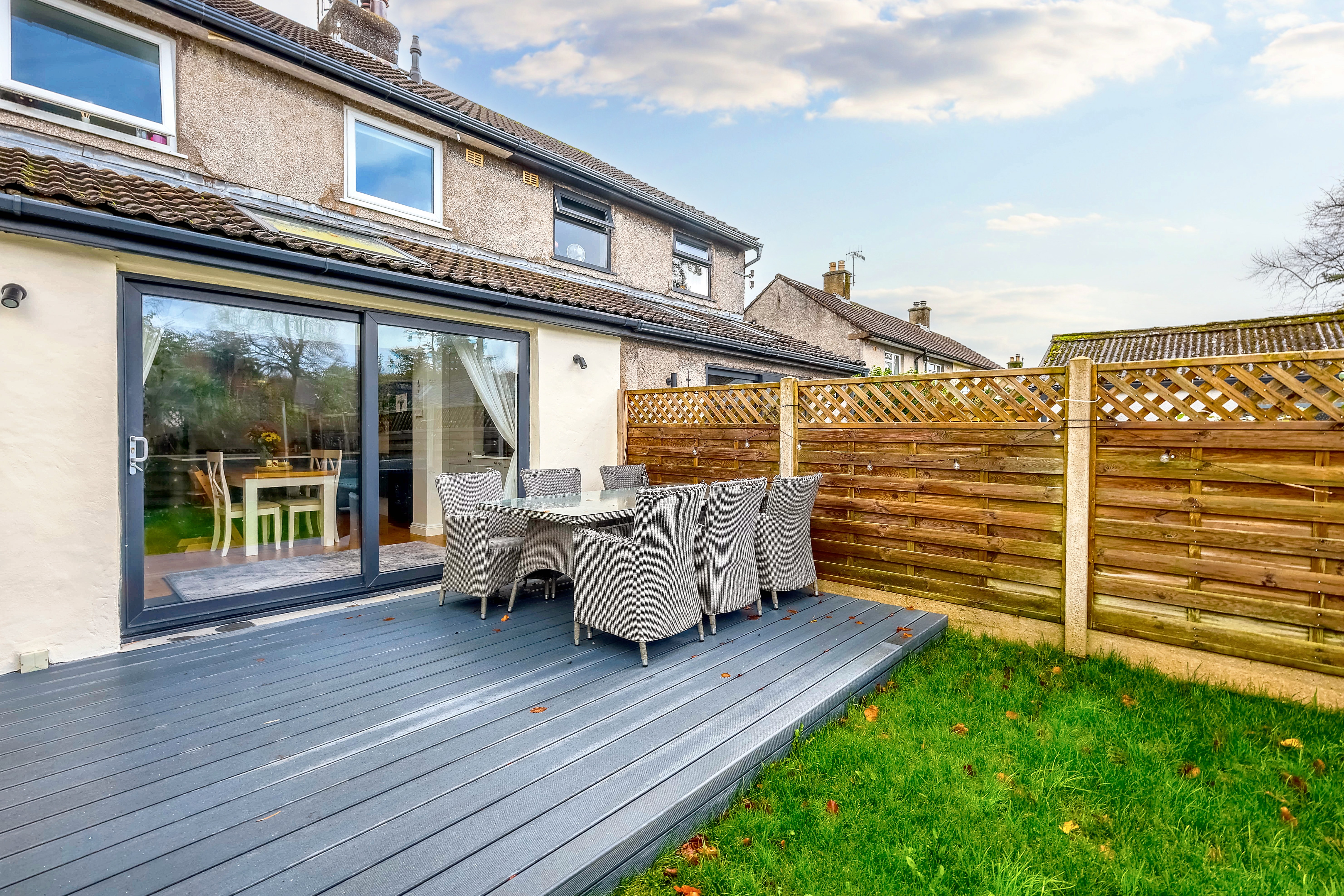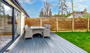 - Stylish and low maintenance garden with a contemporary decked patio, perfect for relaxing or entertaining
