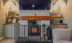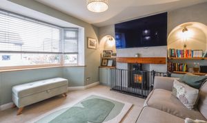 - Inviting living room boasting a characterful wood burning stove and large bay windows that fill the space with natural light