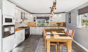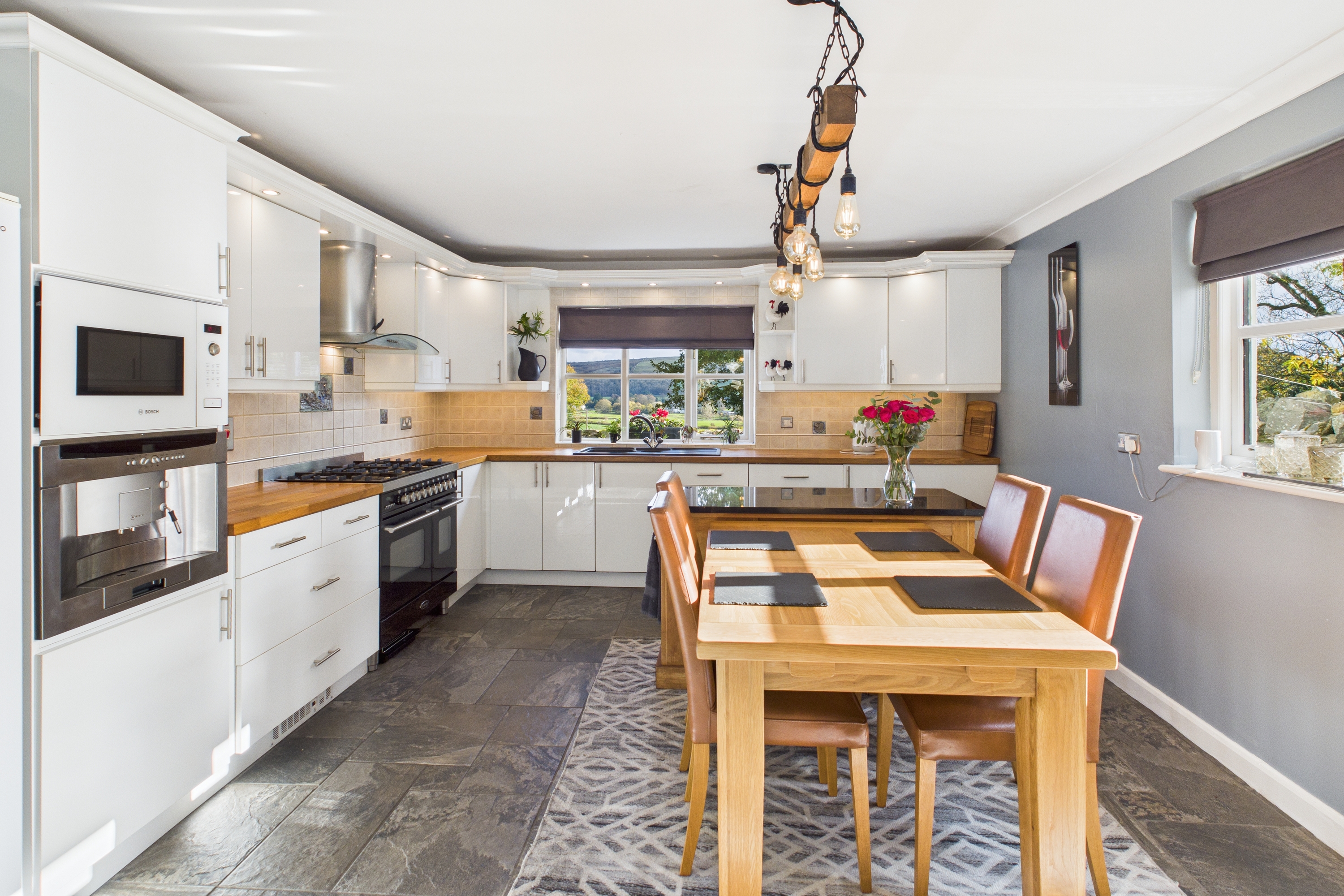 - Stunning kitchen diner with dual fuel Britannia range cooker and a log burner