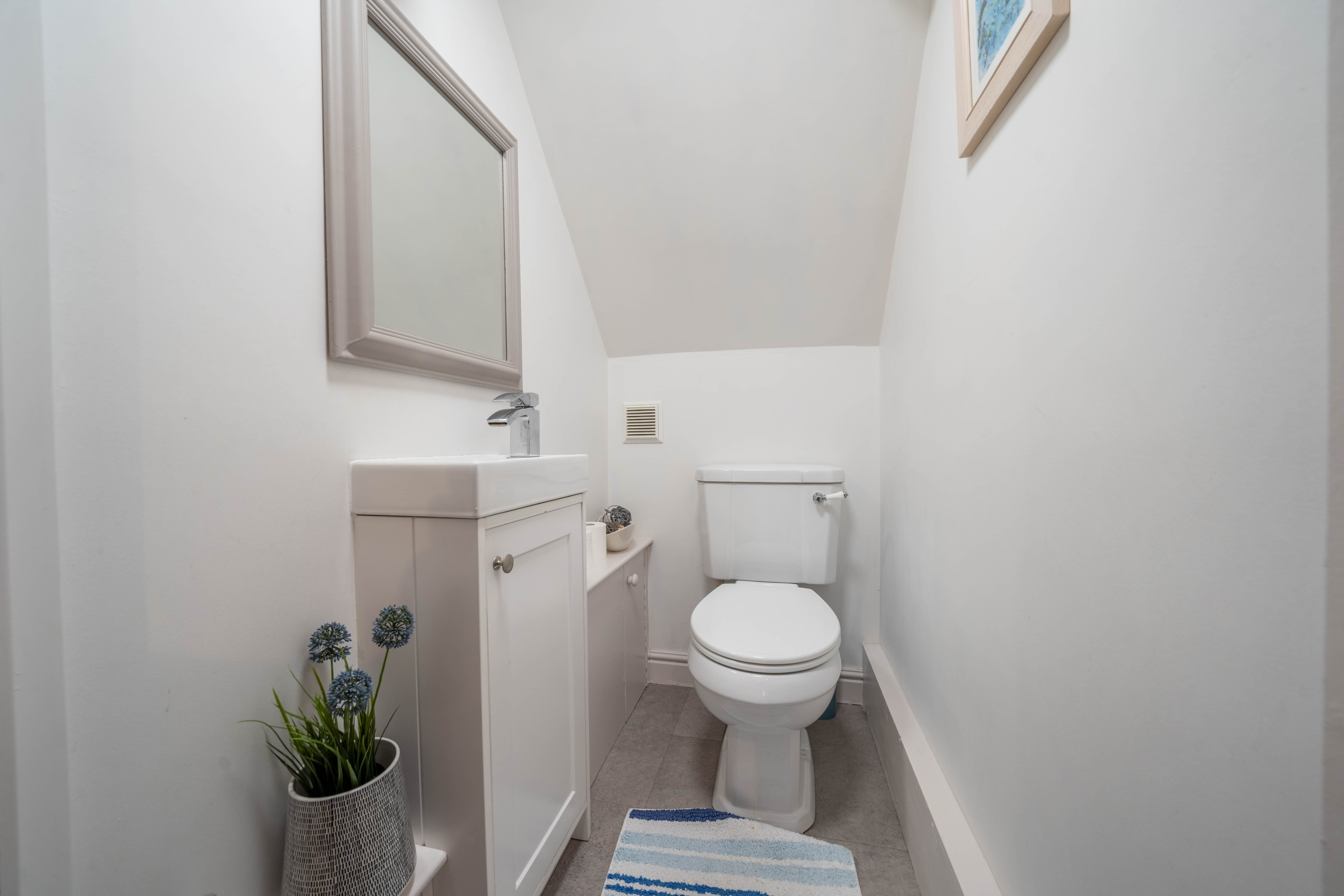 On the upper floors, the home continues to impress with three generous double bedrooms arranged across the first and second floors. One of the bedrooms is currently used as a home office, offering a versatile space ideal for modern working arrangements. The family bathroom is beautifully appointed with a four-piece suite, including a walk-in shower and a stunning freestanding bath, creating a relaxing and stylish space. Character features such as picture rails and decorative coving can be found throughout the home, enhancing its charm.