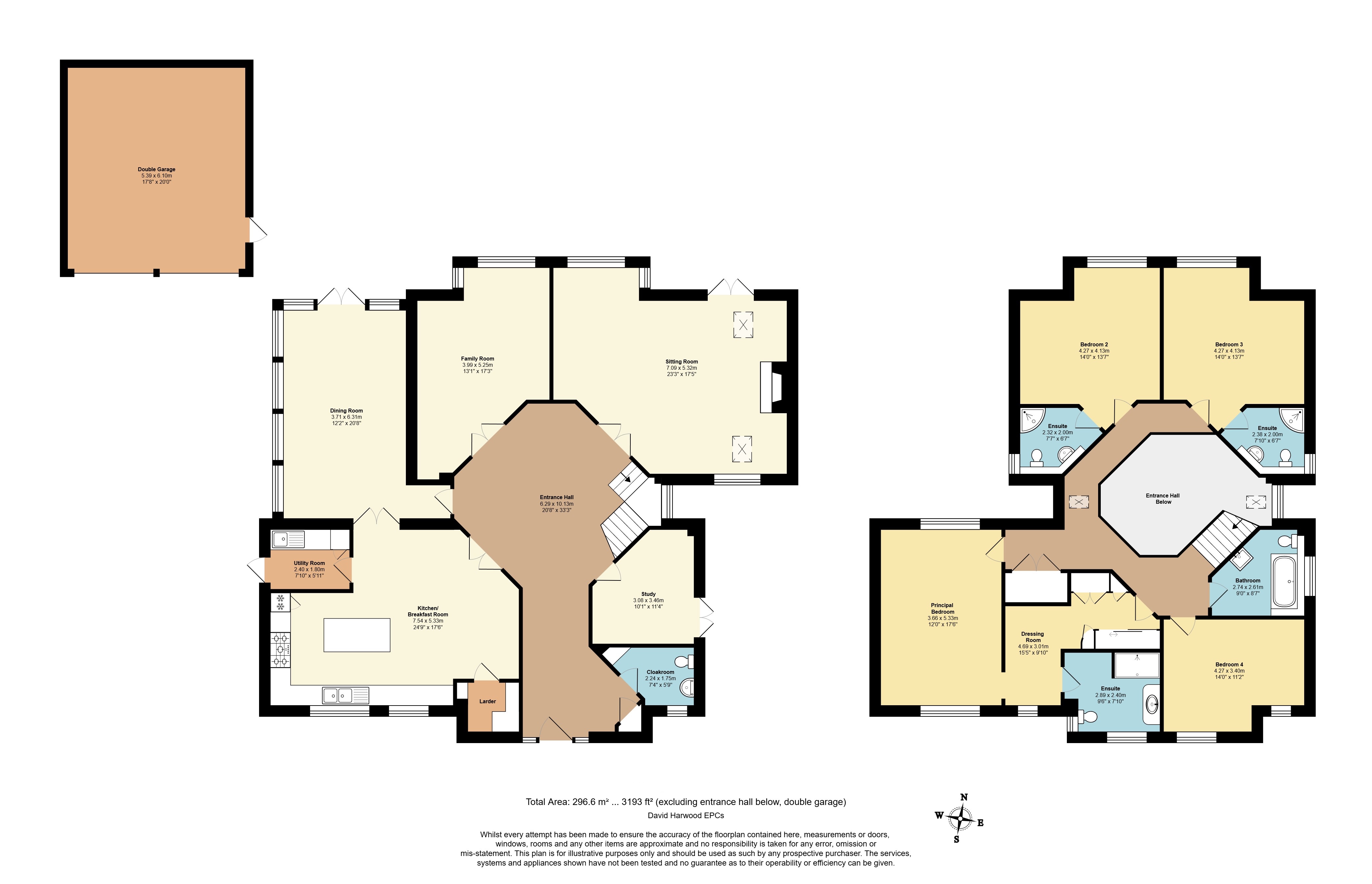 The property faces south-east, drawing morning light across the front façade and into the principal garden areas. Seasonal change is tangible: blossom and new planting in spring, longer evenings spent outside through summer, texture and low sun in autumn, and the architectural outline of beds and branches through winter. A detached double garage sits alongside ample driveway parking, easily accommodating multiple vehicles without dominating the frontage.