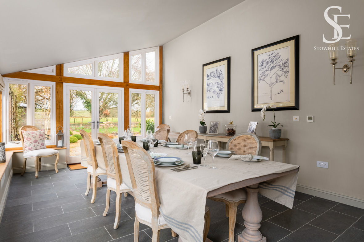 Fulbrook sits just beyond the rise of Burford, within walking distance of its broad High Street and long-established shops, cafés and pubs. There is something particularly appealing about being close enough to wander in for a morning coffee or an evening supper, yet far enough removed to retreat into calm at the end of the day. Longford embodies that balance. It is a house designed for family life, but with the scale and poise to accommodate larger gatherings without ever feeling overstated.