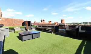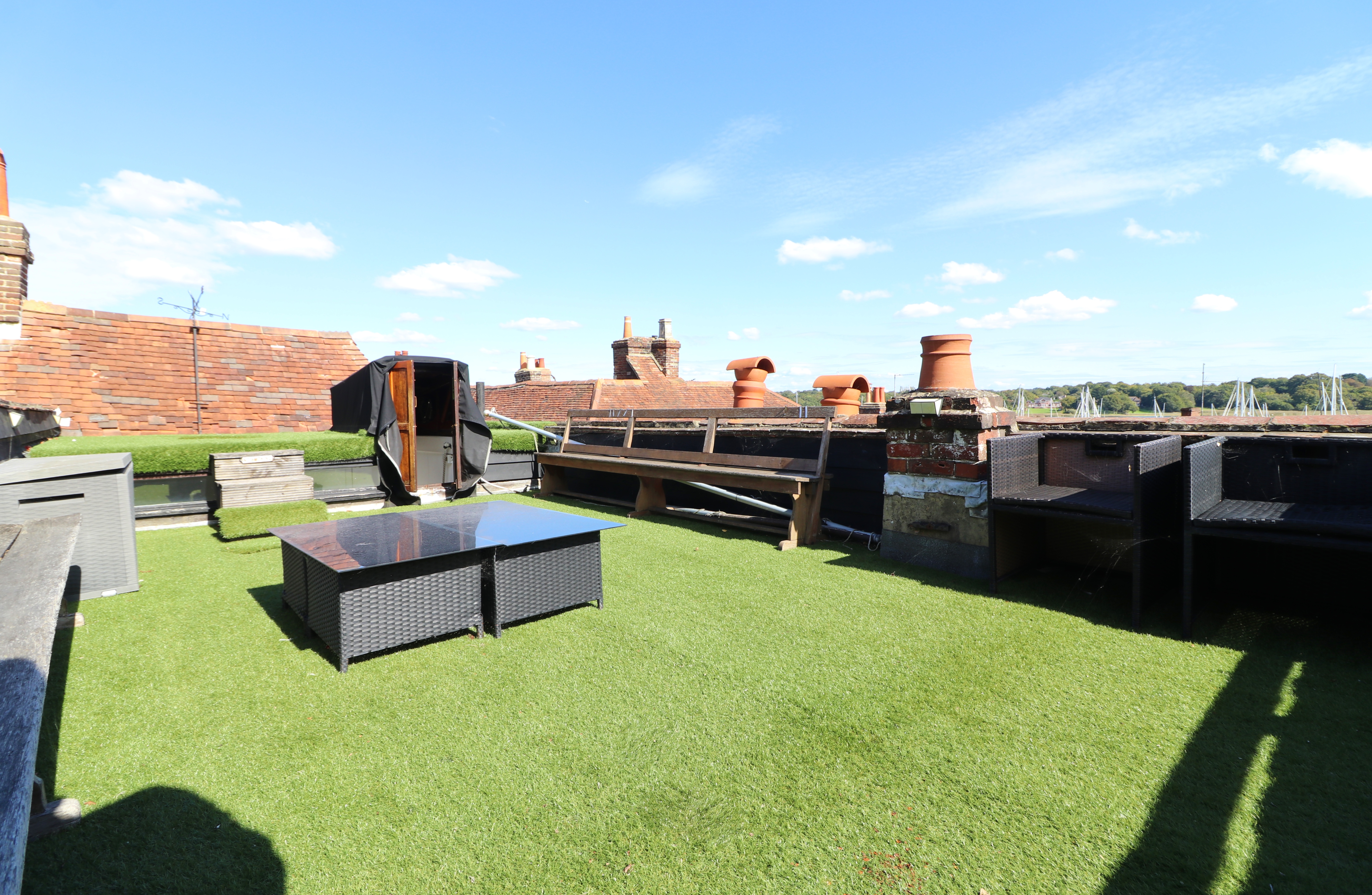 The impressive roof terrace is laid to artificial lawn with fitted bench seating and enjoys wonderful views across the River Hamble and village centre.