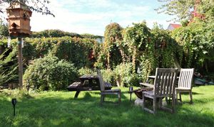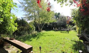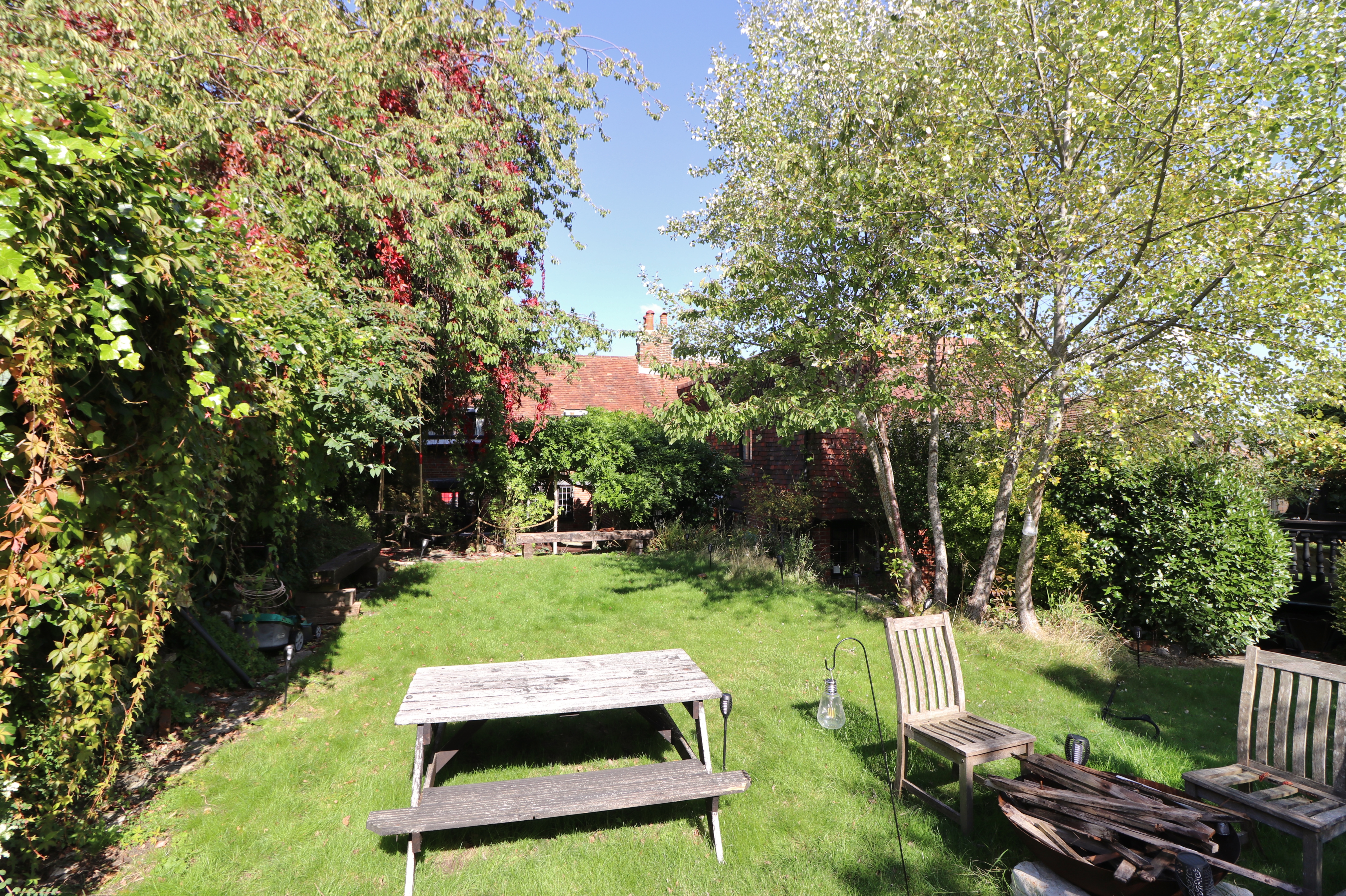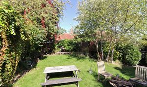 The attractive, rear garden enjoys a southerly aspect and has a paved seating area, centred around a well, leaving the rest of the garden mainly laid to lawn with mature borders.