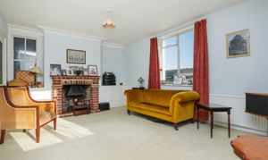 The stairs from the entrance hall lead to the first floor, where a spacious landing connects to four of the five bedrooms. The principal bedroom, located at the front of the house, is a large, airy room with dual aspect windows offering sweeping views of Faversham Creek. The second and third bedrooms are both generous doubles, with the third room offering built-in storage and a fireplace. The fourth bedroom, another spacious double, is situated off the main landing and also features a fireplace. A family bathroom and separate WC are located nearby. The fifth bedroom, a single room positioned between the two front bedrooms, offers flexibility and could be transformed into a dressing room or an en-suite bathroom for the principal bedroom.