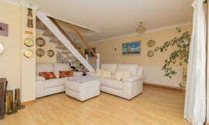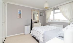 Upstairs, the home features three generously sized bedrooms, two of which enjoy partial sea views, and a spacious family bathroom located at the rear.