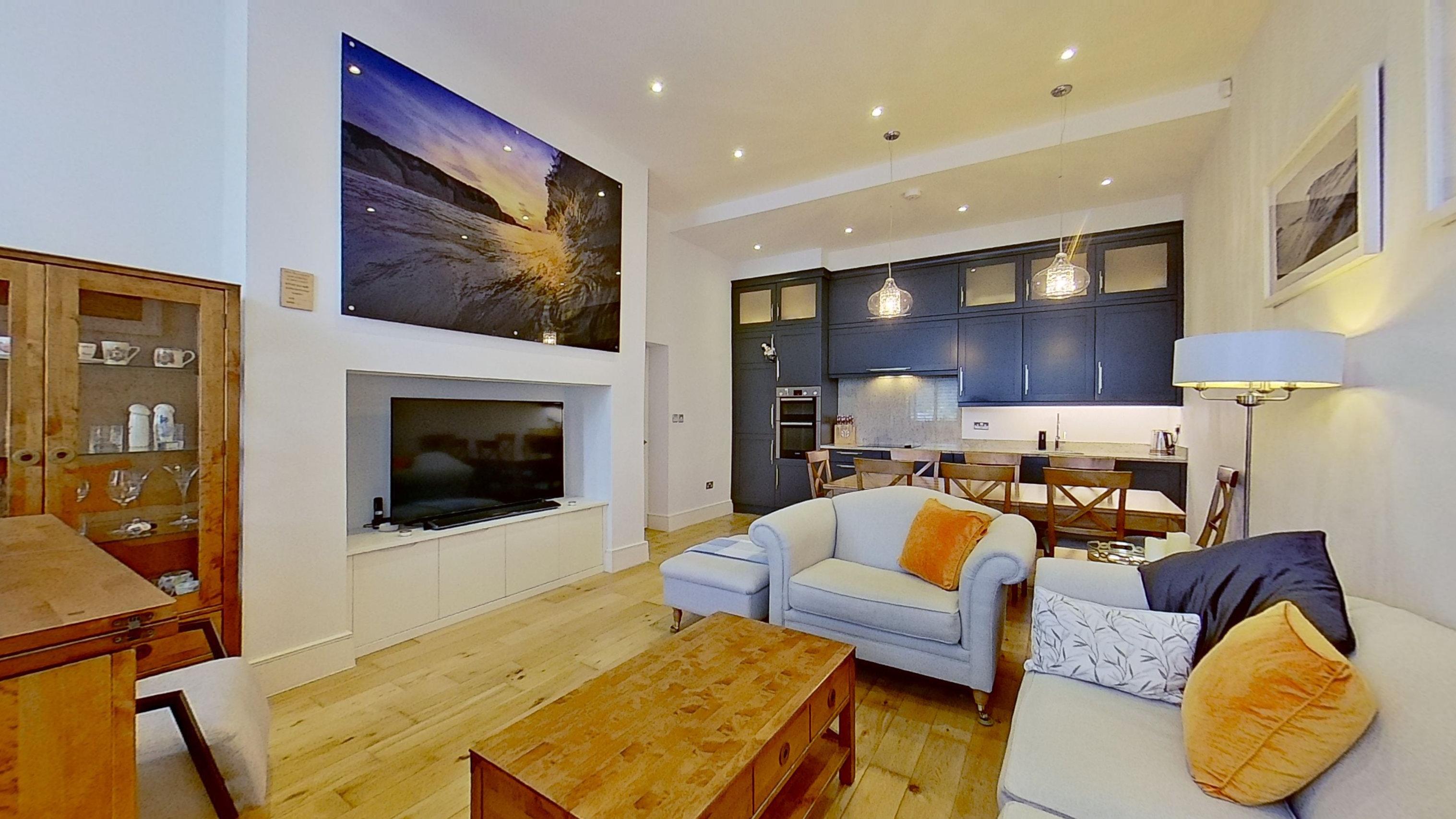 Set within a secure gated community in Bevan Mansions, North Foreland is this bespoke apartment found in Lord Vestey's former residence. This ground floor apartment boasts its own front door covered by CCTV, the spacious entrance hallway with solid American oak flooring leads into the beautiful open plan kitchen/lounge with exceptionally high ceilings, large windows with white shutters and a range of fitted appliances. The property benefits from ambient lighting, new switch plates and sockets with USB chargers, Hive heating, as well as bespoke cabinetry throughout the apartment. There is also a separate utility room with additional storage unique to this apartment with underfloor heating in the bathrooms.