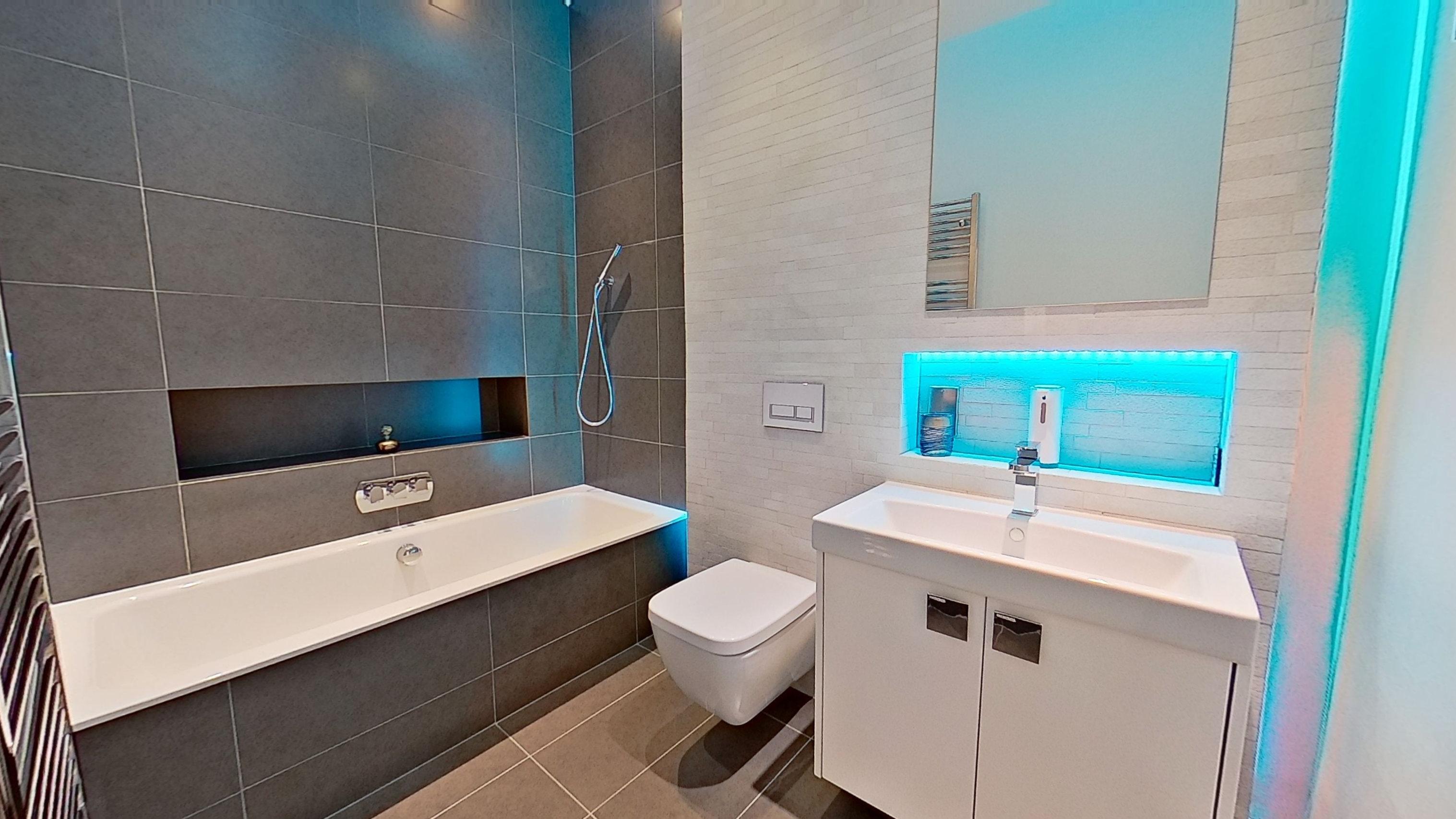 The glorious master bedroom offers floor to ceiling built in wardrobes and cupboards with a magnificent stylish ensuite shower room with large walk in shower. There is also a door to the private garden from the bedroom leading to the patio area. The guest bedroom is also an impressive size with white shutters and a computer area for anyone looking to work from home, the family bathroom serves the guest bedroom and has a bath with shower over and further bespoke units for storage.