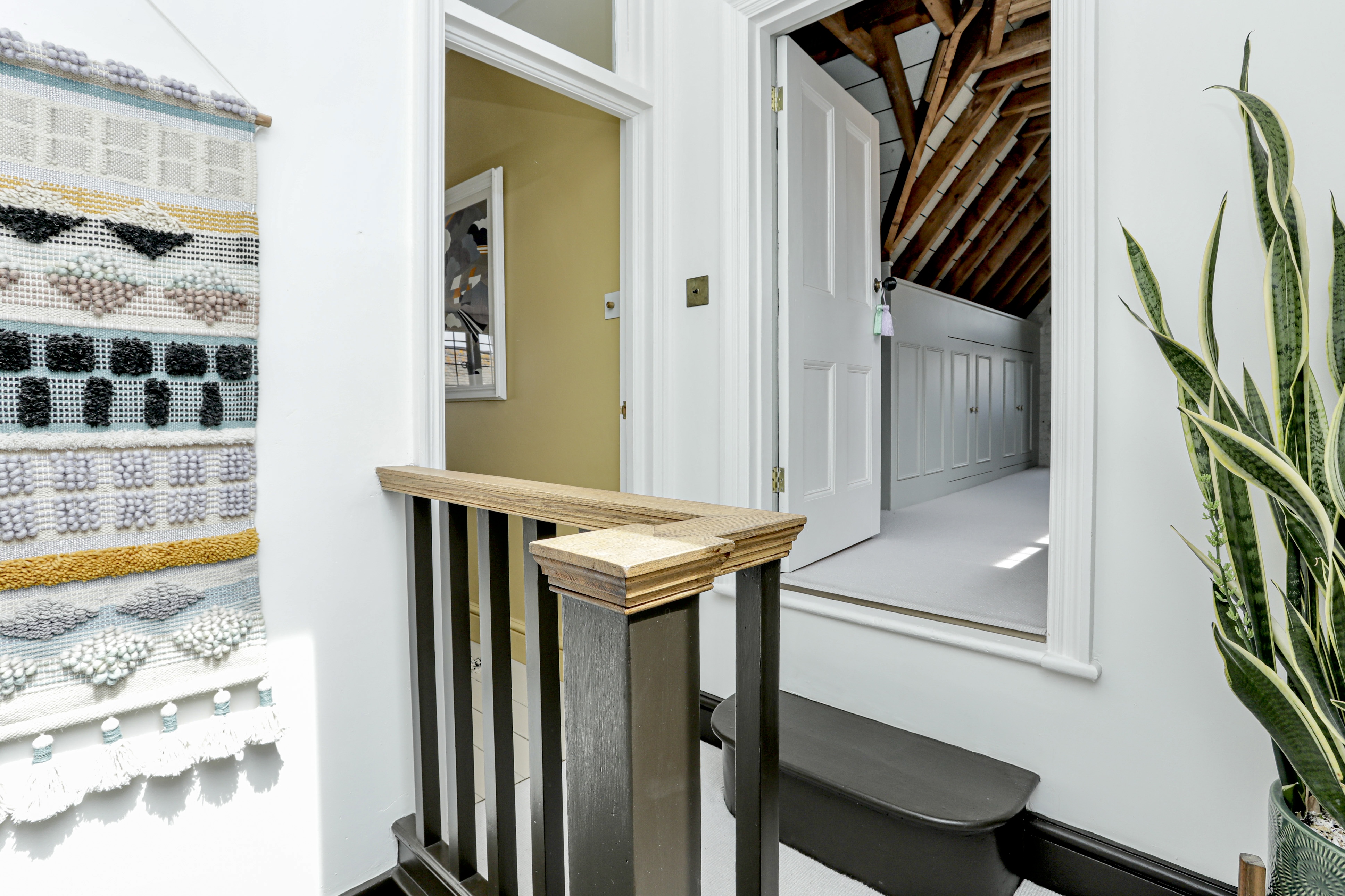 Upstairs to the second floor with glazed roof light to the ceiling.