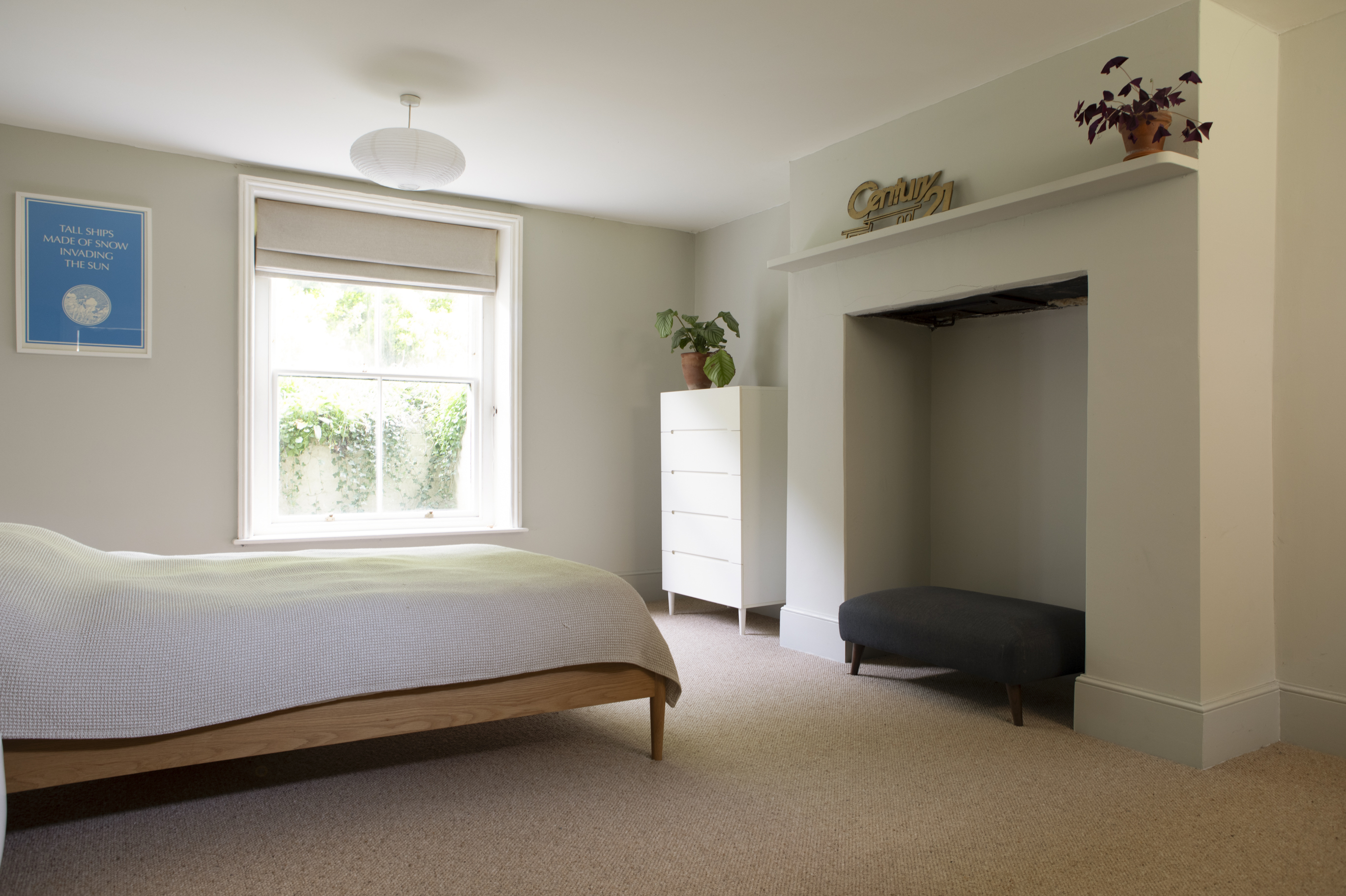 On the first floor, you’ll find the principal bedrooms, with the standout room being the front-facing bedroom. Its impressive floor-to-ceiling sash windows let natural light flood the room, while elegant built-in cupboards provide ample storage without compromising on the room’s character. The other two double bedrooms are equally generous in size and beautifully presented, offering plenty of space for family living. The family bathroom, with its deep bathtub, is perfect for unwinding after a busy day or for relaxing family bath times.