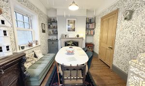 The ground floor features a lounge, dining room, and a modern fitted kitchen with a central island, nook, and shower room/utility area for added convenience. Moving to the first floor, you will find two bedrooms and a family bathroom with a stunning roll-top bath. Ascend to the second floor to discover two additional bedrooms, each boasting their own unique character.