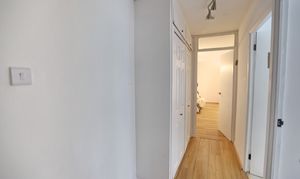 Communal hallway which is carpeted and lit, leads to the ground floor apartment.