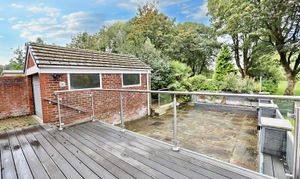 Step outside to the composite decked patio and low maintenance garden, offering a private outdoor sanctuary for relaxation and al fresco dining. The two garages present the exciting potential to be converted into a home office or studio, catering to a variety of lifestyle needs.