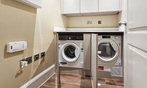 Separate utility room for laundry and additional storage needs.