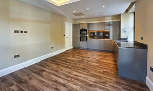 A bright and airy open-plan kitchen / diner / living space with ample room for both relaxing and entertaining. The kitchen is fully fitted with contemporary units and integrated appliances including a full size fridge / freezer and dishwasher.