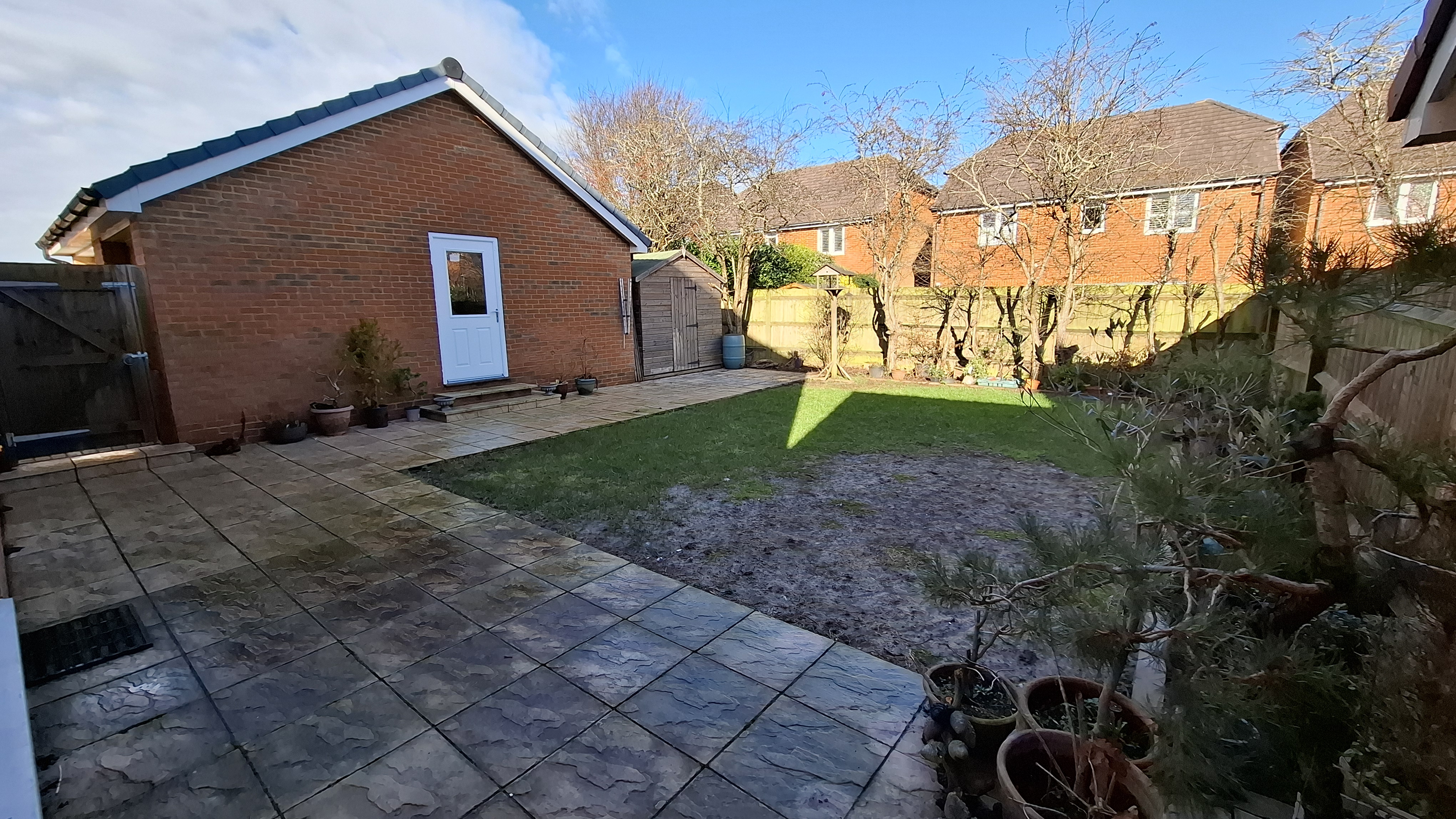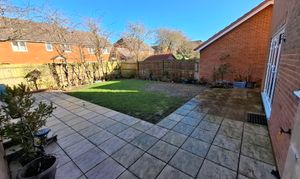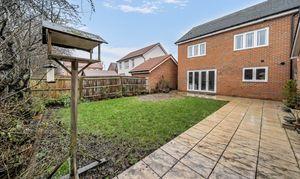 Externally, the front garden is open plan and a driveway extends along the side of the property, leading to a single garage at the rear with an EV charging point. The rear garden is predominantly laid to lawn, complemented by an L-shaped patio and mature borders, ideal for outdoor entertaining and family use.