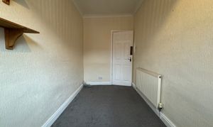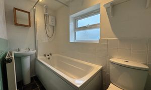 Moving upstairs, there is a good sized upstairs hallway which provides access to all three bedrooms and the family bathroom which is to the left of the stairs and briefly comprises of a toilet, bath with overhead shower and a small sink. Across from this you will find the smallest bedroom, then the largest, and finally the second bedroom which benefits from two storage cupboards.