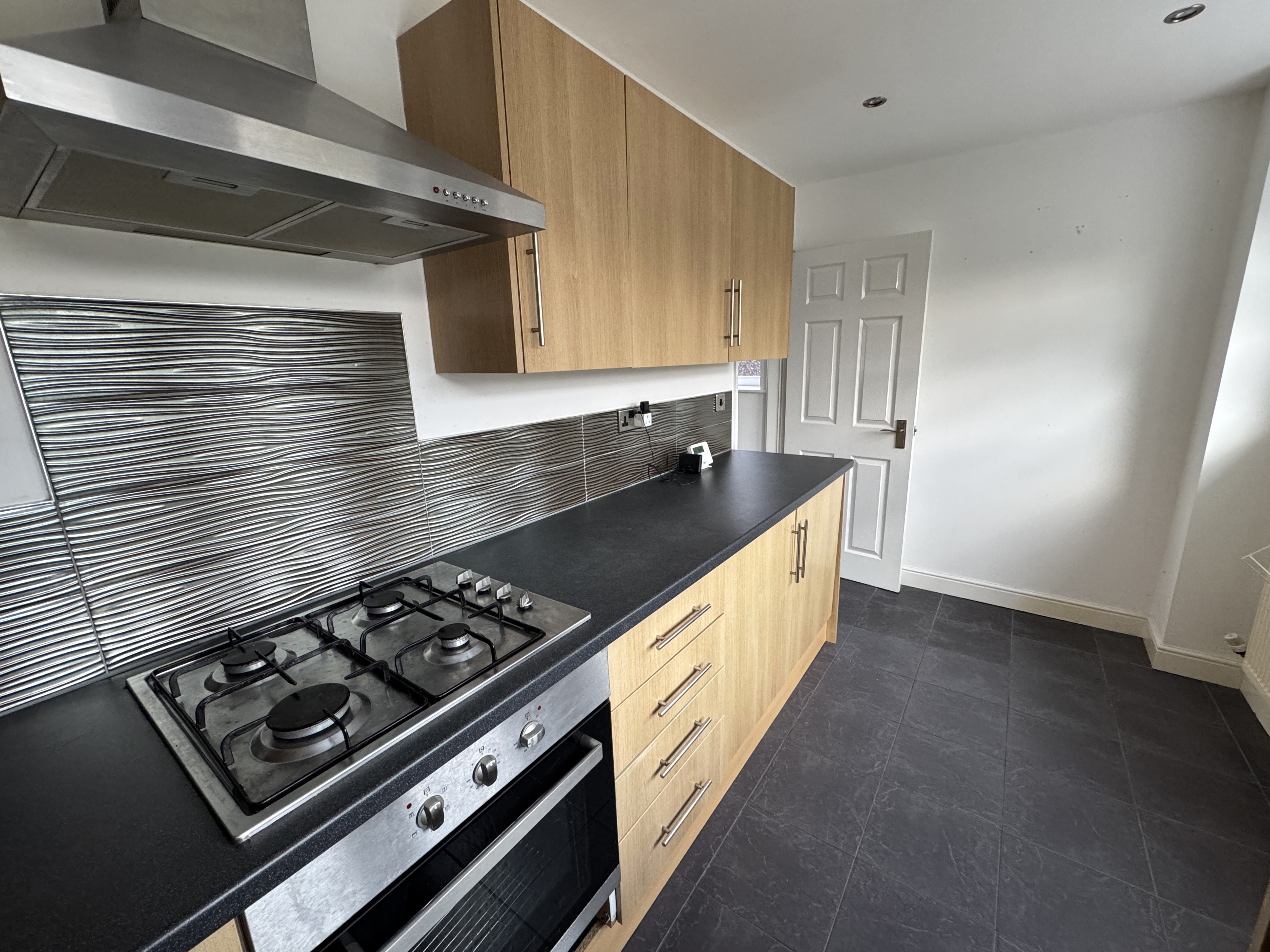 As you enter the property you are greeted by a welcoming porch area which takes you through to the living room. This room benefits from lots of natural light and a fireplace, and provides access to the kitchen. The kitchen briefly comprises of a fitted fridge and freezer, oven with hobs and overhead extractor fan, sink, and plenty of cupboard space. This room also has a door leading out to the rear garden. Moving upstairs, you will first find the family bathroom which briefly comprises of a bath with overhead shower, sink, and toilet. There is then the two bedrooms, the biggest of which has fitted wardrobes and both of which are good size.