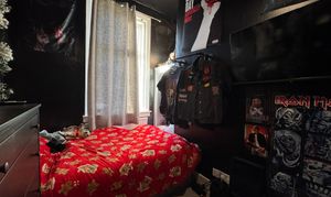 Moving upstairs, you find yourself in the upstairs hallway which has a couple of storage cupboards at the end. The first room you will find is the second bedroom which is to the right of the corridor, and is a great size with a big window providing natural light. Then, there is the family bathroom which is a very spacious room that briefly comprises of a bath with overhead shower, toilet, sink, and a storage cupboard providing convenience for occupants. Finally, the master bedroom is to the left of the hallway and provides more than enough space for all the necessary furniture, as well as a built in cupboard.