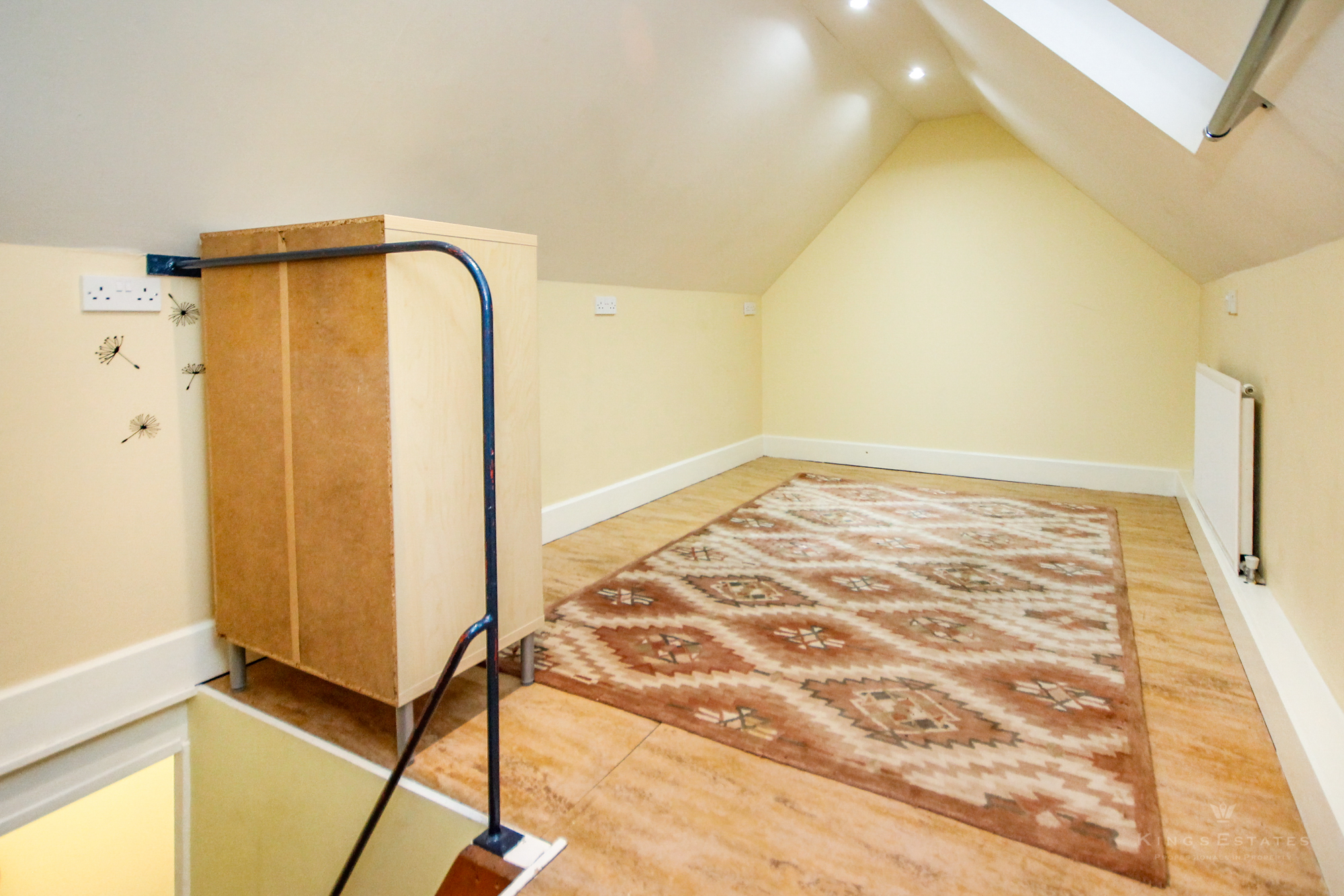 - Space-saving stairs to a charming pitched-roof bedroom