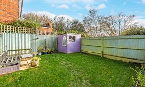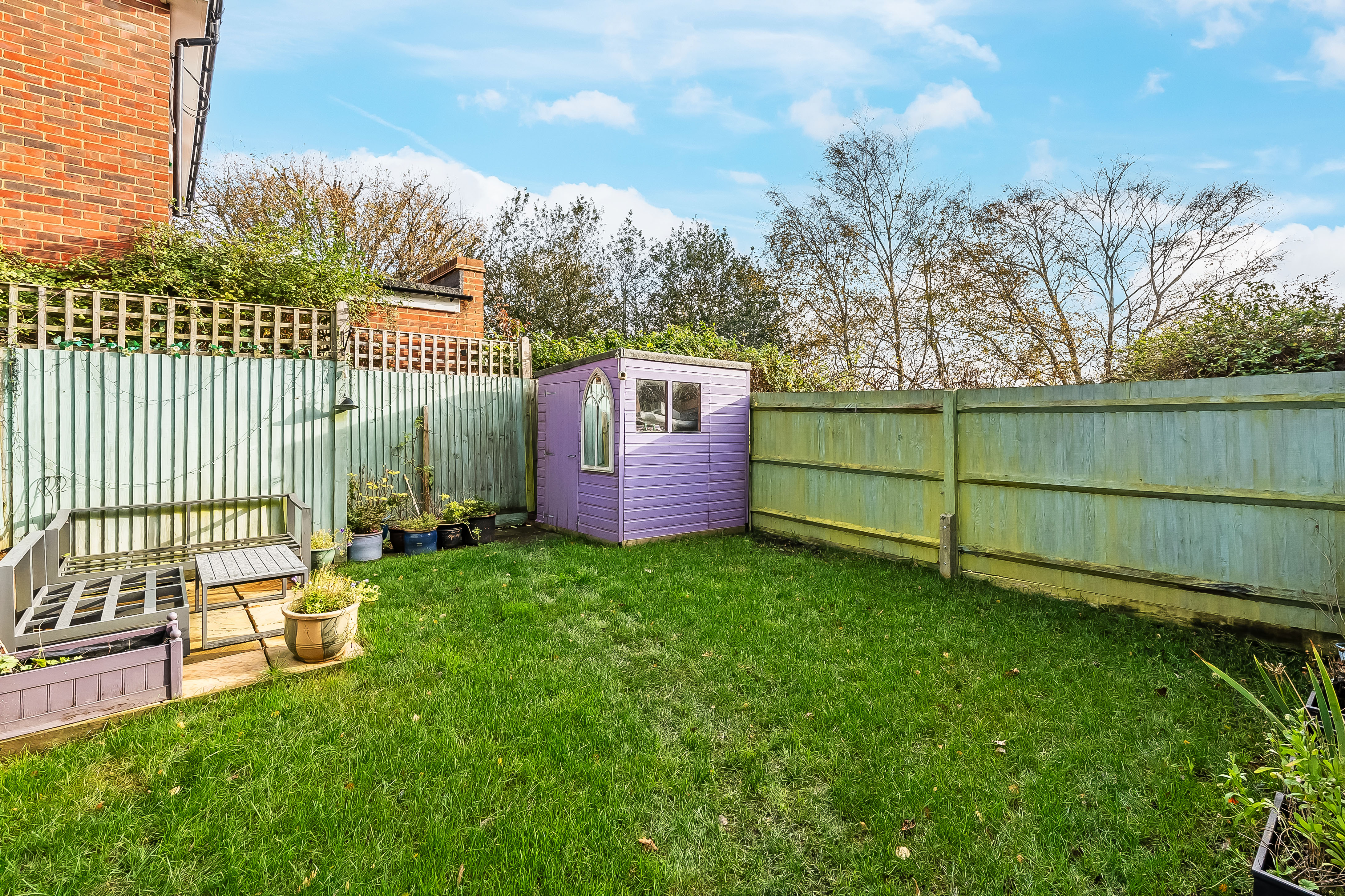 Enclosed garden with patio areas and shed