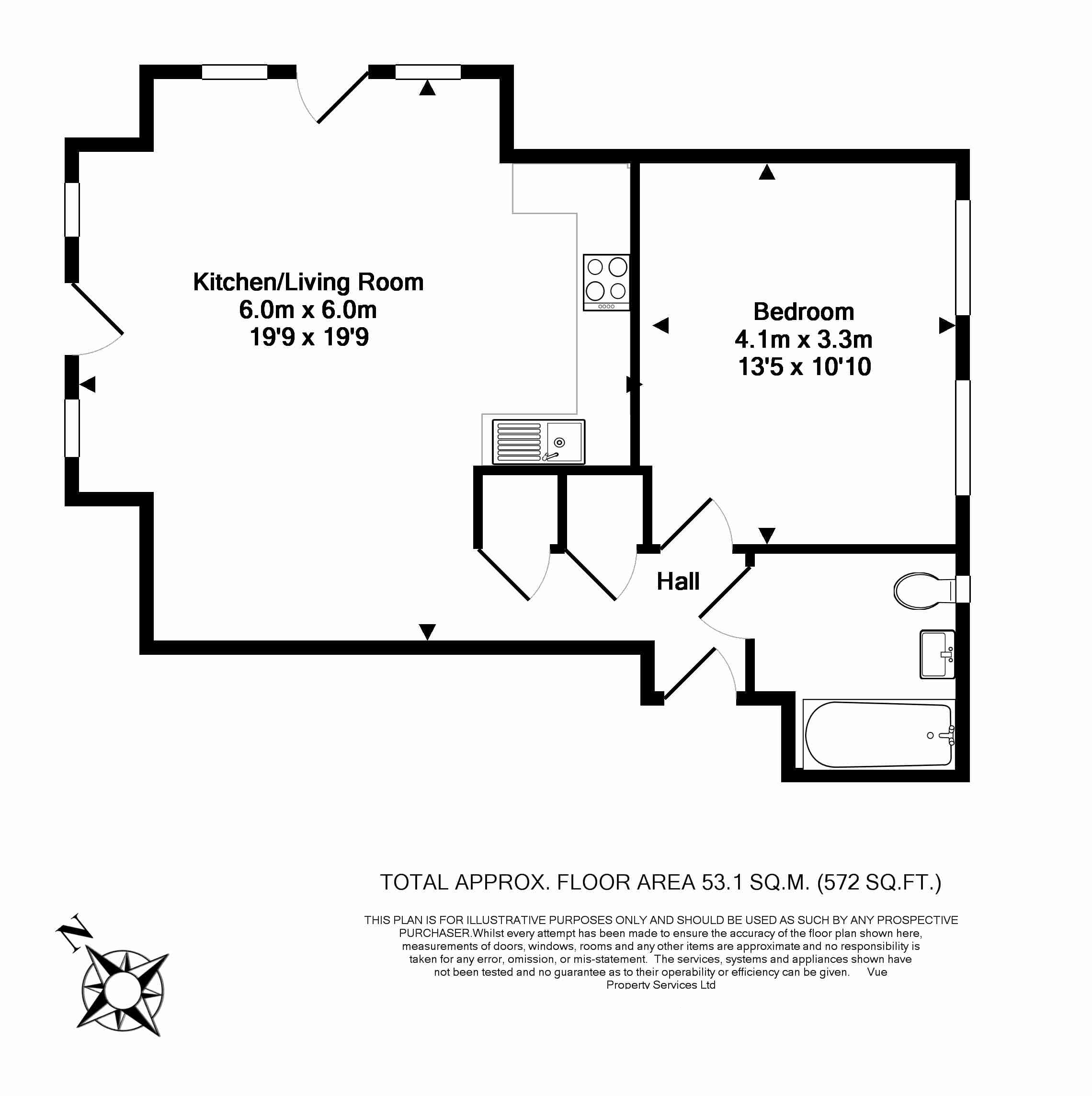 Approximate Gross Internal Area: 53.1 Sq M / 572 Sq Ft
