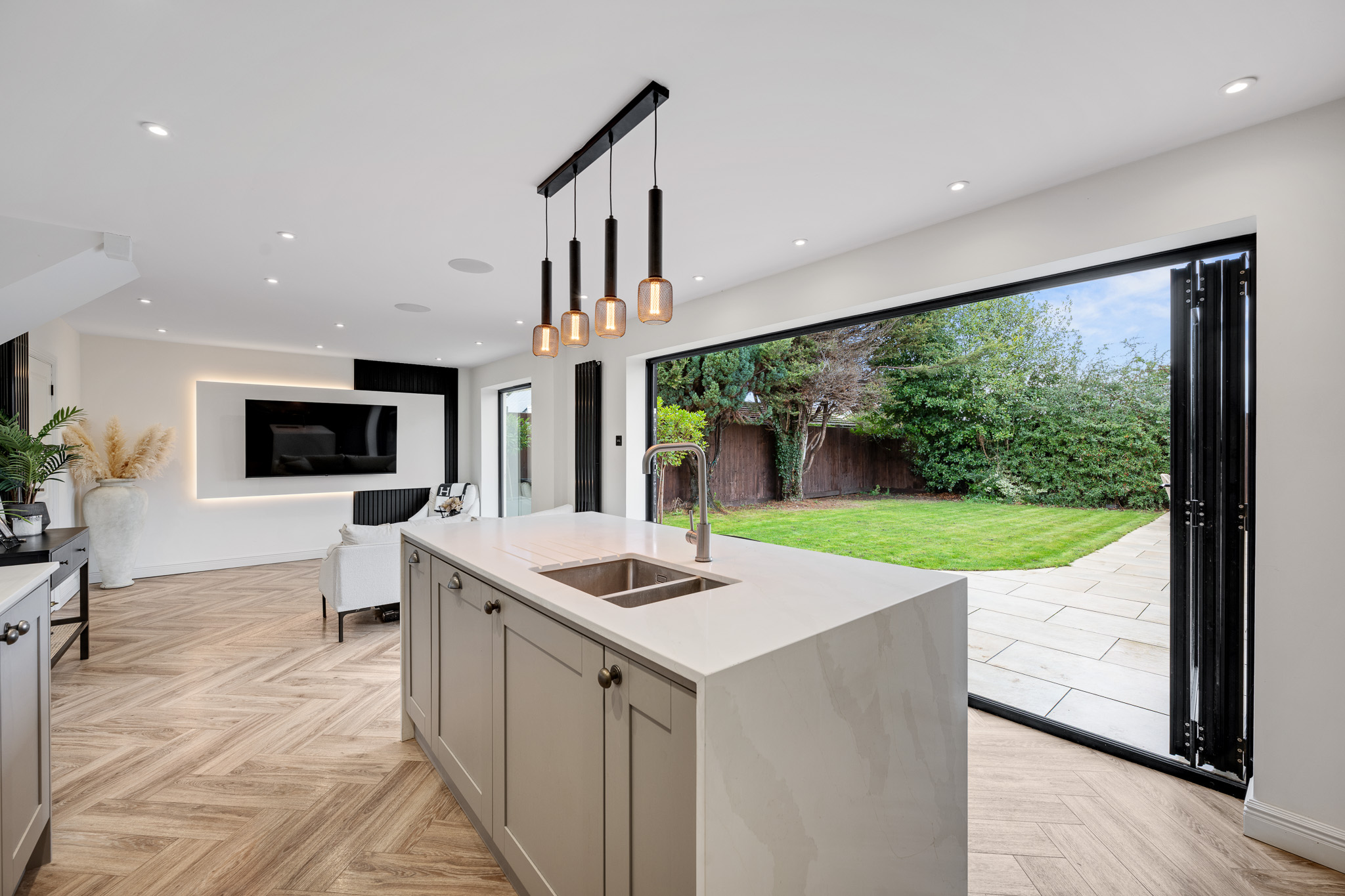 - Open plan kitchen diner - Central island and bi fold doors opening directly onto the garden.
