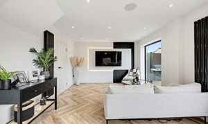 Accommodation comprises central entrance hallway, leading into the reception room with front aspect window and ample space for relaxing and entertaining. The separate kitchen/diner, with bi-folding door spilling out onto the garden – perfect for al fresco dining! - comprises a range of matching wall and base units with work surfaces and central island/breakfast bar, incorporating inset sink unit, ‘NEFF’ electric hob, integrated double ‘Bosch’ oven and microwave/oven, integrated large fridge freezer, and ‘Bosch’ dishwasher. The kitchen also enjoys surround sound with two ‘Monitor’ audio speakers both in the kitchen and outside in the garden. A separate utility area provides additional work and appliance space, with access to a useful downstairs WC, and personal door to the short garage/store.