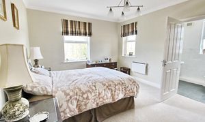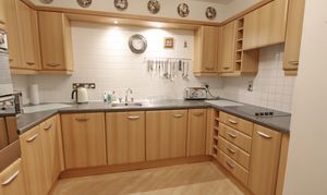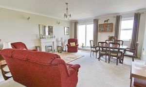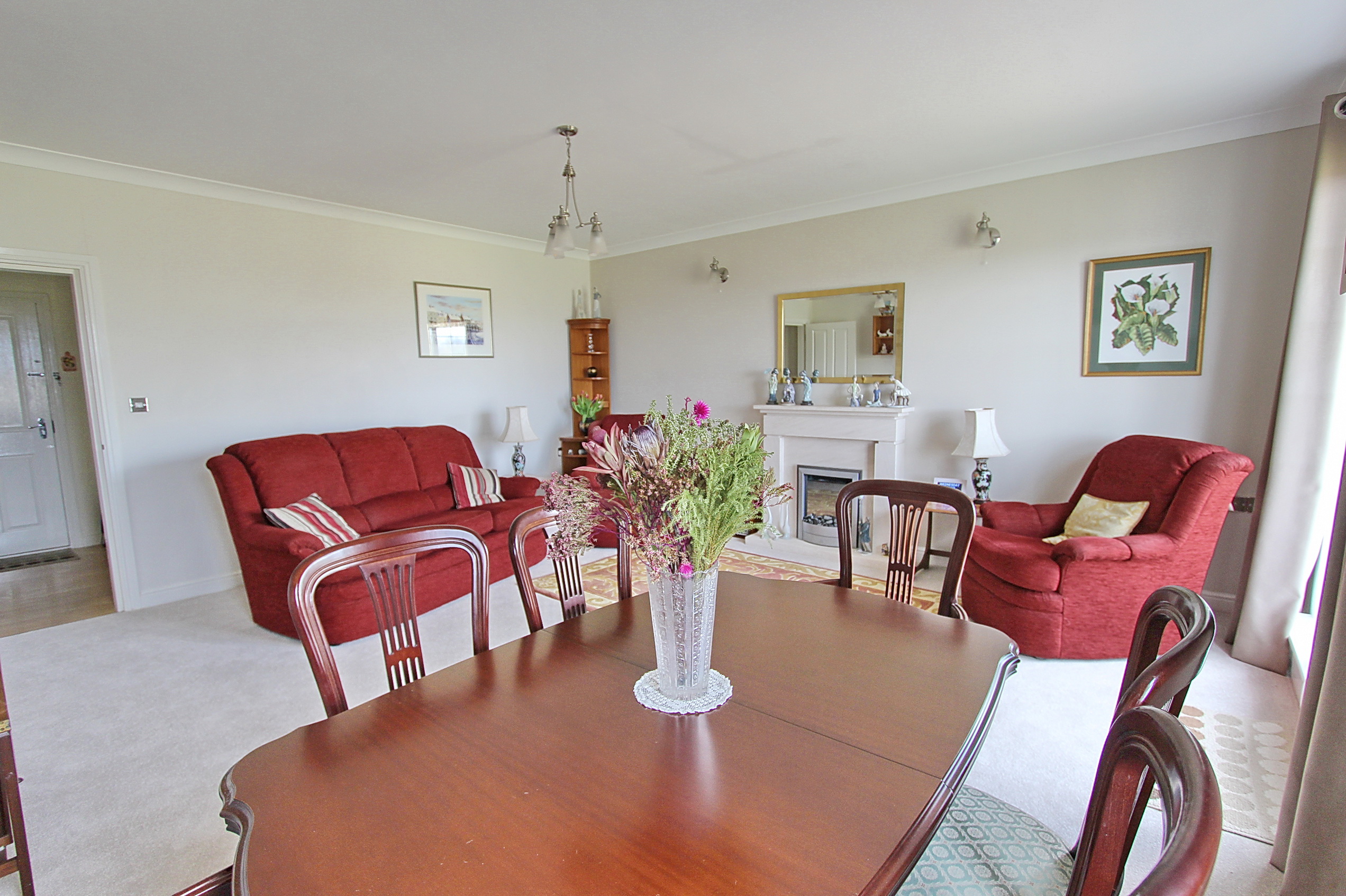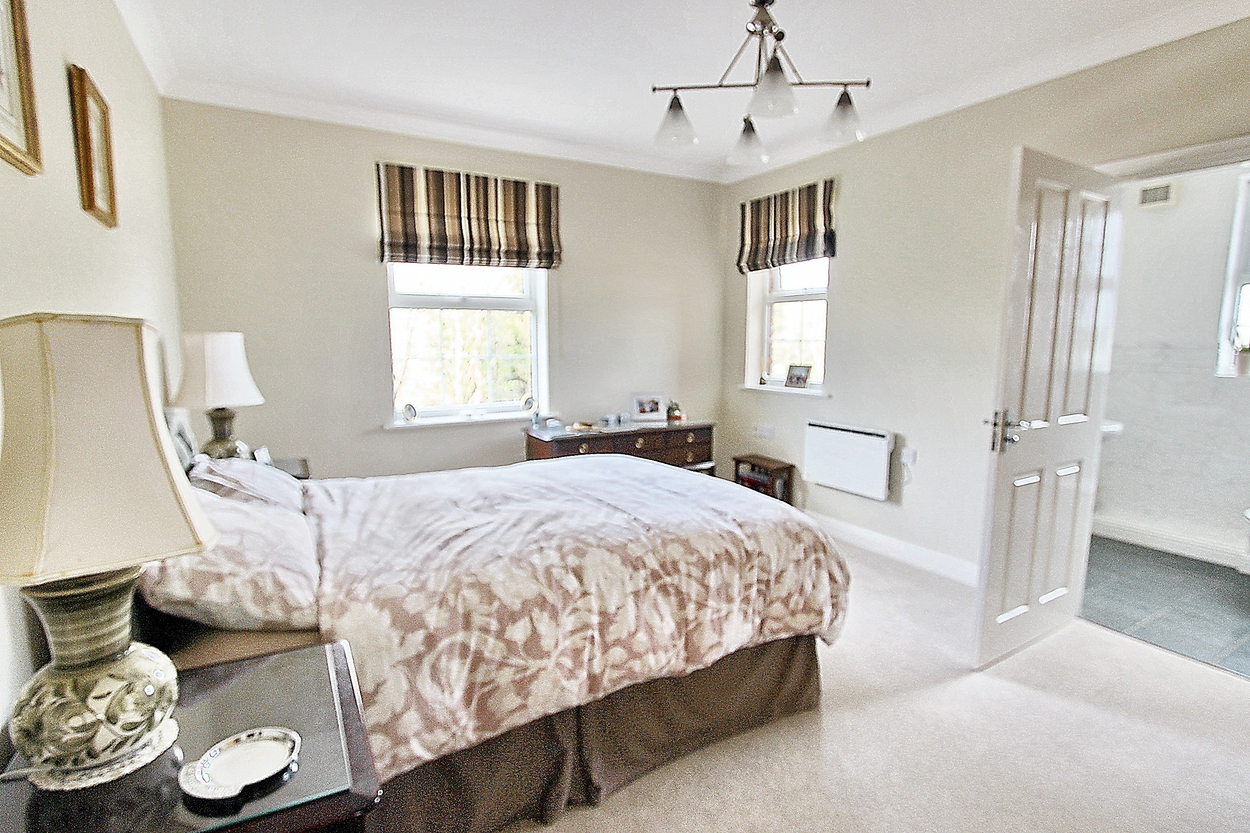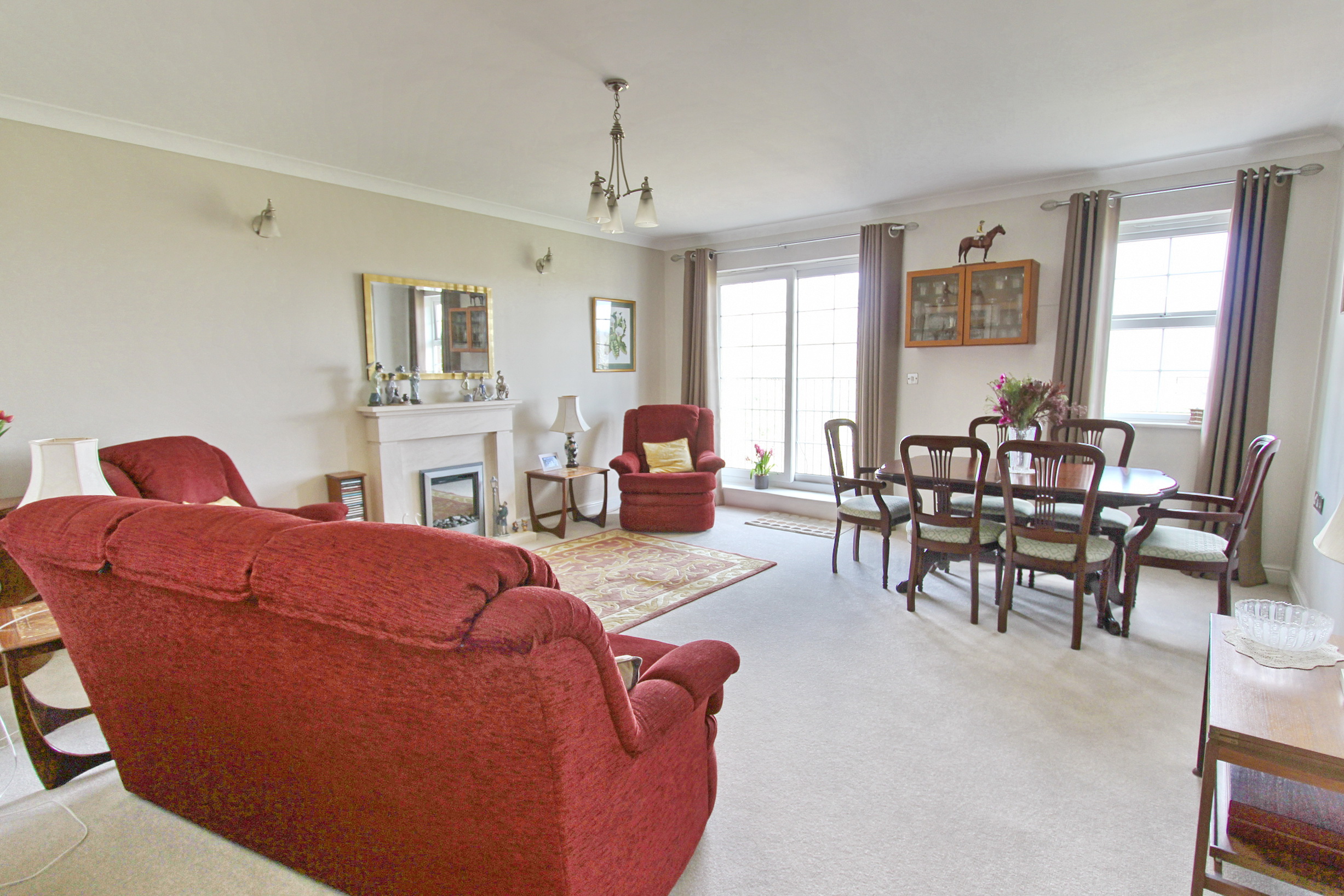 The spacious layout includes a bright hallway with built in storage/cloaks and airing cupboards, two double bedrooms complete with modern fitted furniture and newly carpeted flooring, ensuring both style and practicality. The highlight of the home is the bright lounge/dining room with a feature electric fire and newly carpeted flooring and this leads out to a balcony with enjoyable views over the school playing field and the majestic Pennine range. The kitchen is equipped with integrated appliances including a double oven, hob, fridge/freezer, dishwasher and washing machine, making meal preparation a breeze and also includes the free standing microwave. Further enhancing the appeal of this property are the en suite shower room, additional bathroom, and the well-maintained communal areas and grounds. Most items in situ and furniture are negotiable extras.