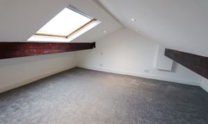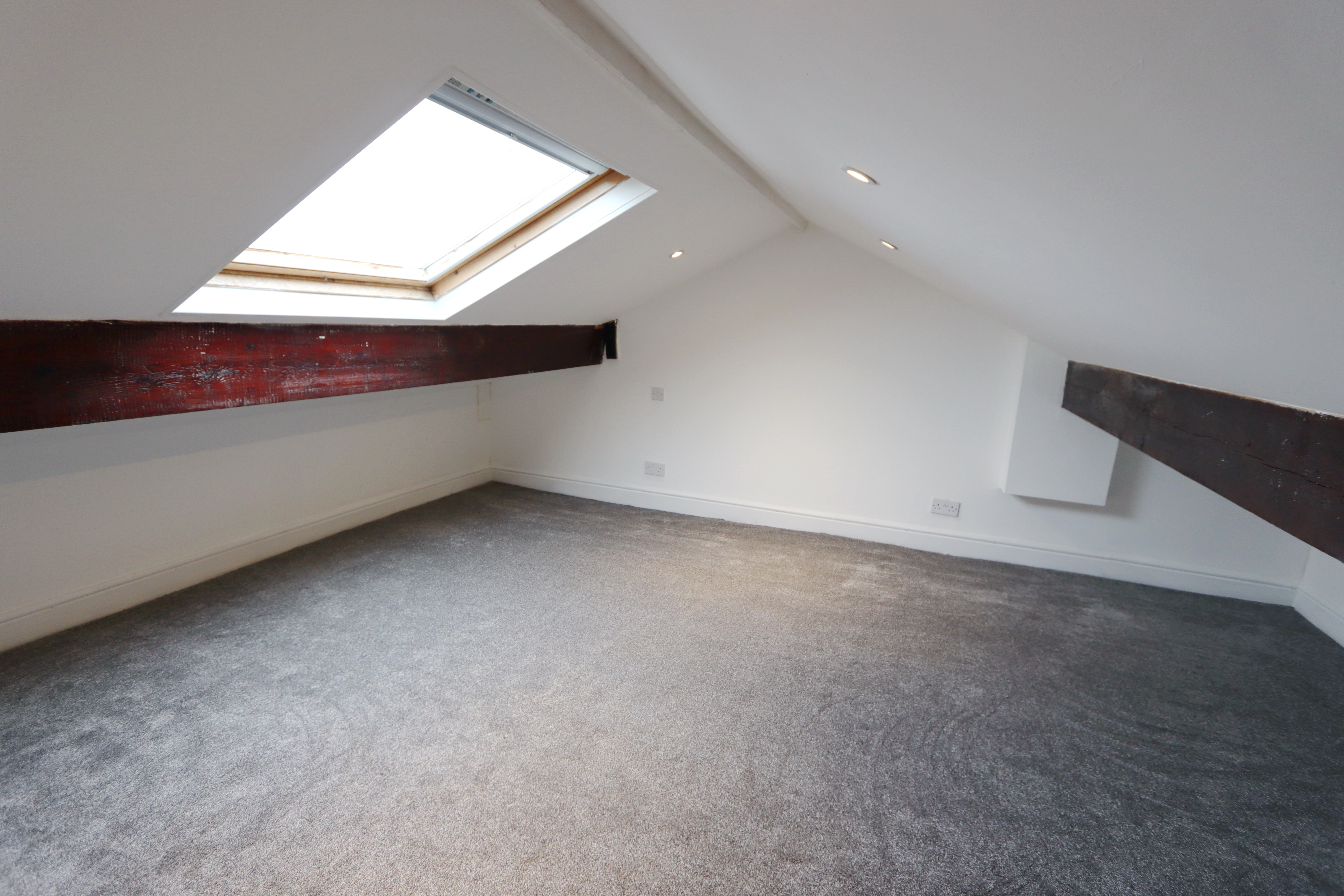 The landing provides access to the two bedrooms and the bathroom. The main double bedroom has new carpeted flooring, provides ample space for free standing furniture and has a double glazed window with front views. The second bedroom allows space for freestanding furniture, has carpeted flooring and double glazed window with rear views. It also has a stairway leading up to the loft space and houses the wall mounted, recessed combi boiler. ). The new bathroom consists of a bath with shower attachment, low level w.c, pedestal hand wash basin, double glazed frosted window,