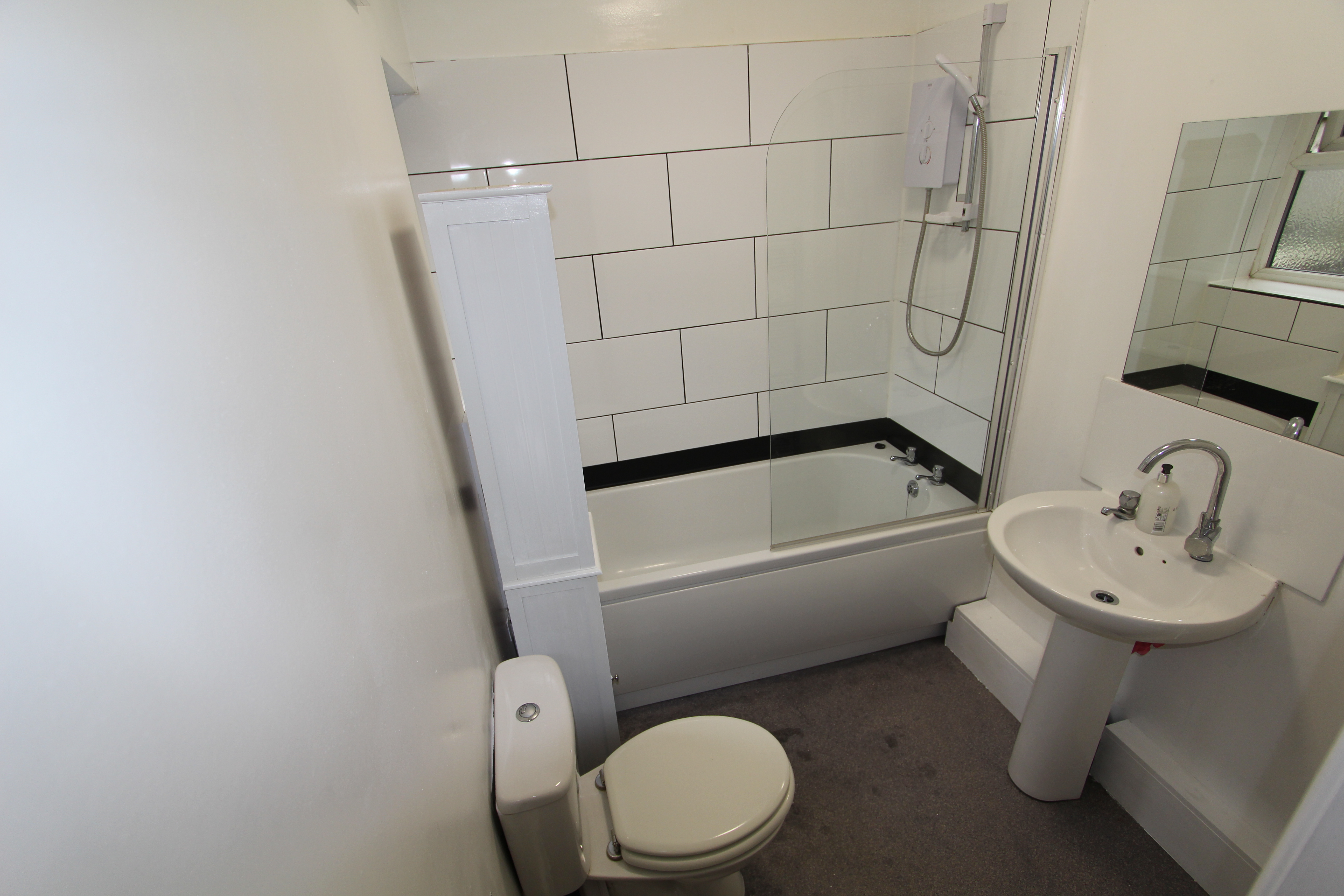 Modern bathroom with both bath and electric shower