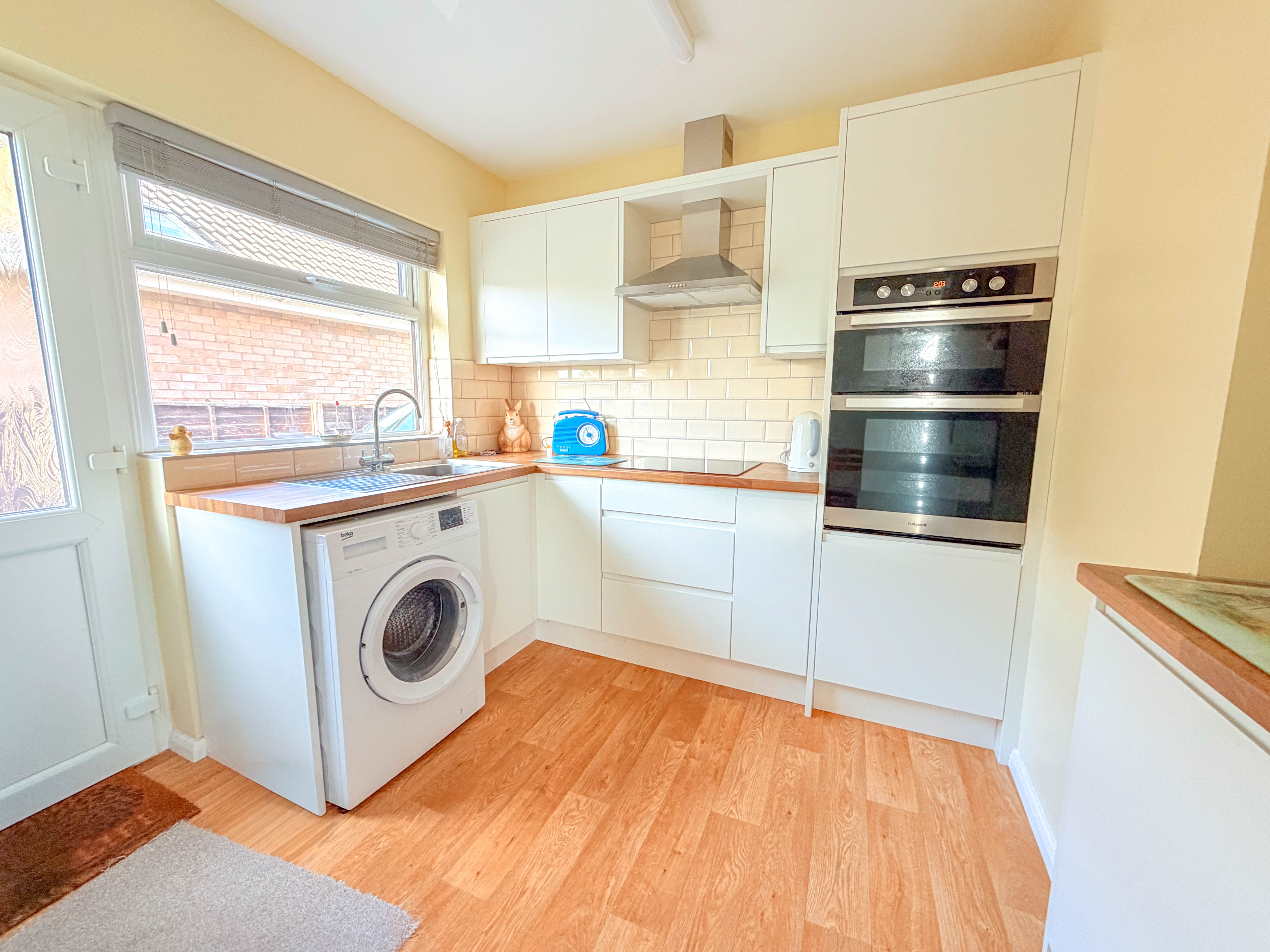 The well-designed kitchen is accessed from the hall and offers a range of fitted units complemented by contrasting work surfaces, providing both style and practicality for everyday living.
