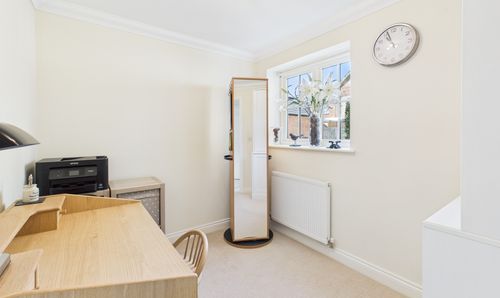 A dual aspect room with windows to the front and rear. Built-in wardrobes. Two radiators.