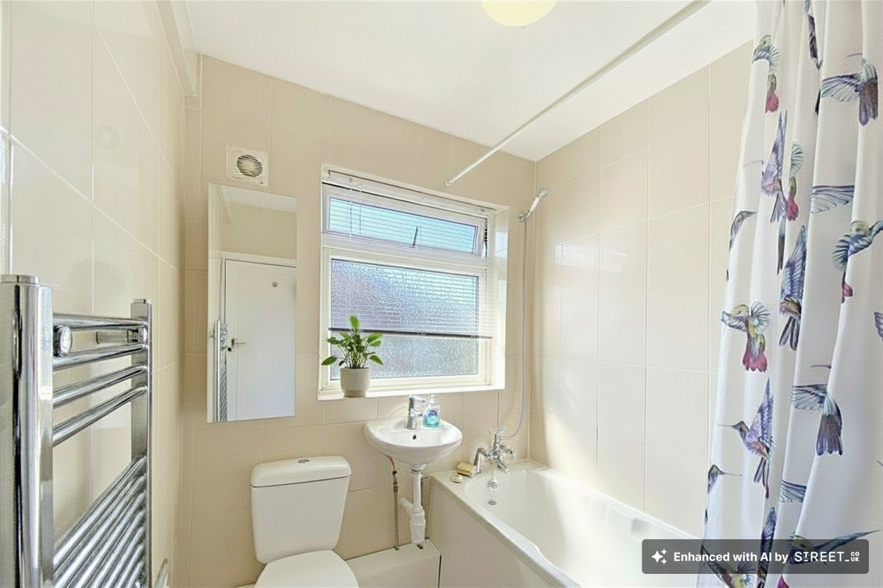 A private entrance has stairs leading to a welcoming hallway. The living room has attractive wood flooring and a front aspect window flooding the room with plenty of natural light. The kitchen and bathroom are modern, two good sized bedrooms and a rear garden which has a grassed area and a wooden storage shed.