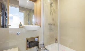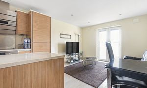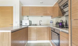 The property features a bright and airy layout with contemporary interiors throughout. The communal entrance benefits from a secure video entry phone system, leading into a welcoming hallway with ample storage. The open plan kitchen/reception room enjoys an abundance of natural light, featuring double doors opening to a Juliette balcony. The modern fitted kitchen is well equipped with a range of sleek base and eye level units and integrated appliances, creating an ideal space for both everyday living and entertaining.