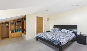The second bedroom is located on the entrance floor alongside the family bathroom, while the top floor hosts an impressive principal suite with built-in wardrobes, dressing area and private en suite shower room.
