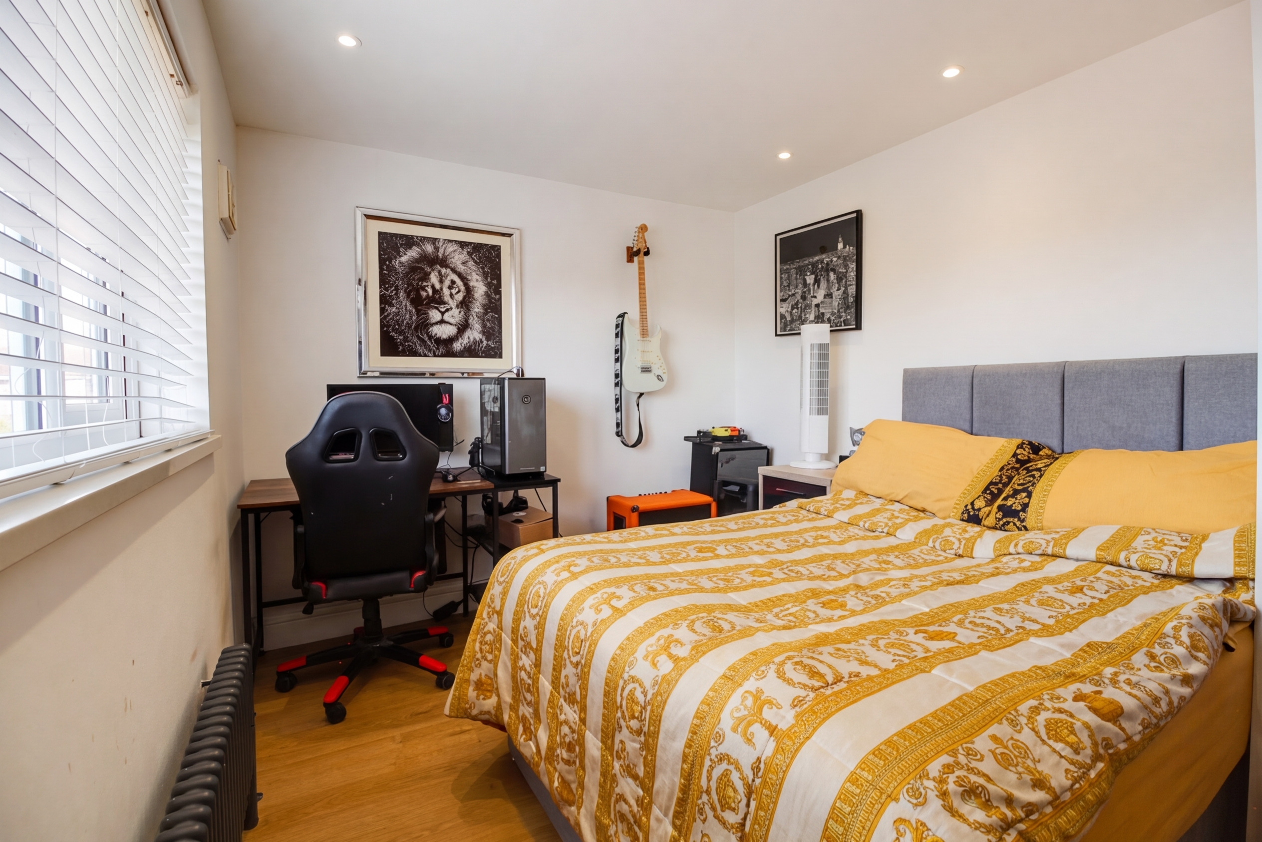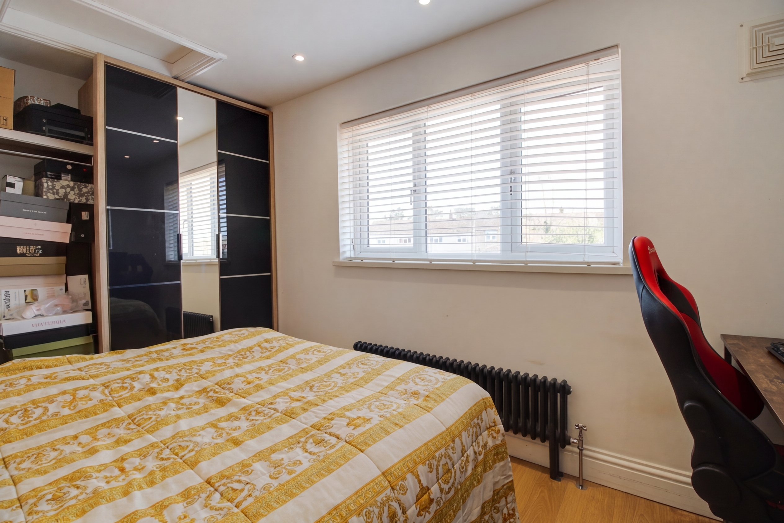 Window to the front, two built-in cupboards, radiator and laminate wood flooring. w to the rear, radiator and laminate wood flooring.