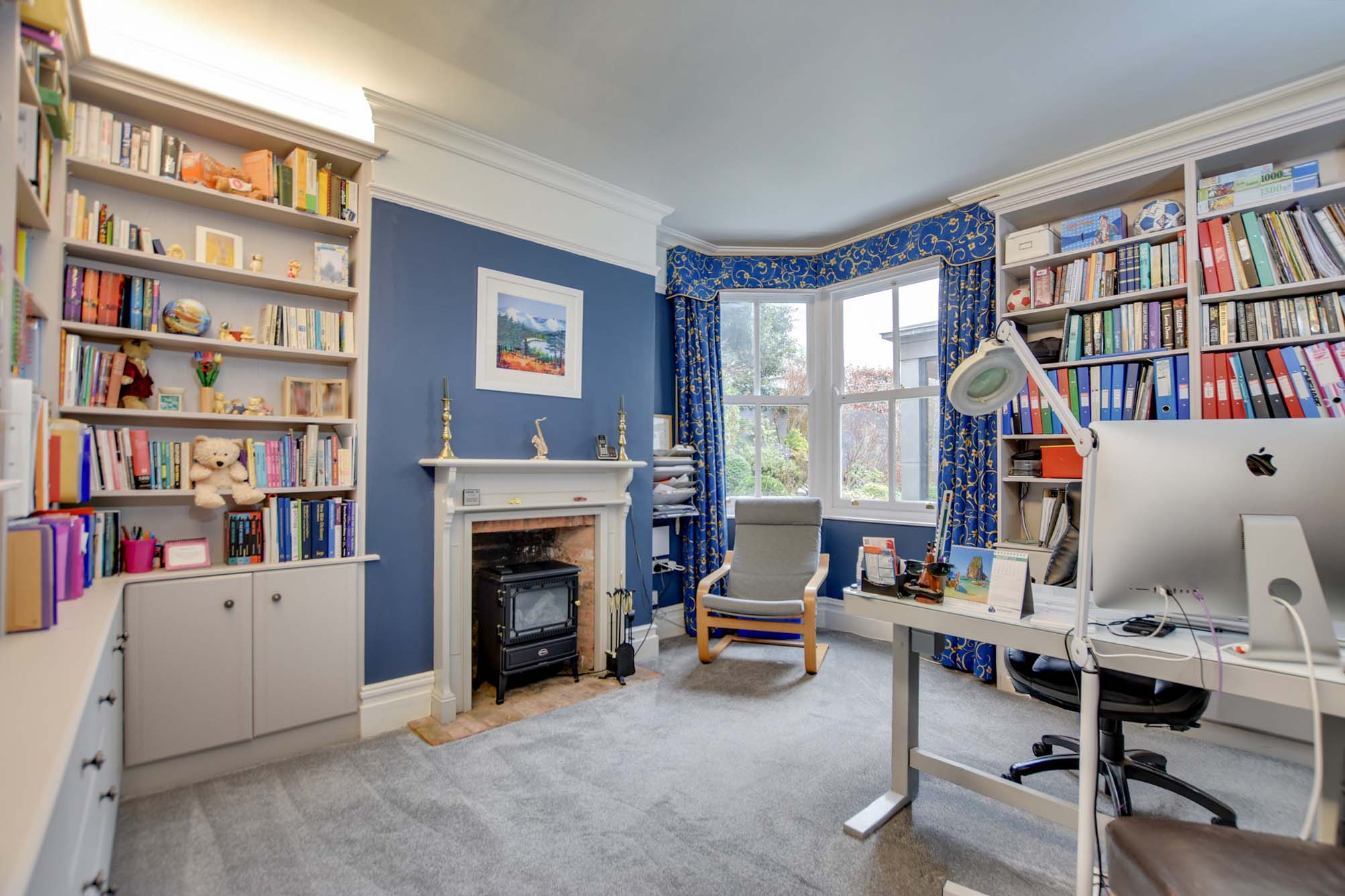 With a double-glazed sash window to the rear elevation, coving to the ceiling, picture rail, fireplace, bespoke fitted furniture with bookshelves, cupboards and a radiator.