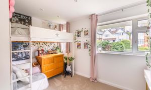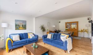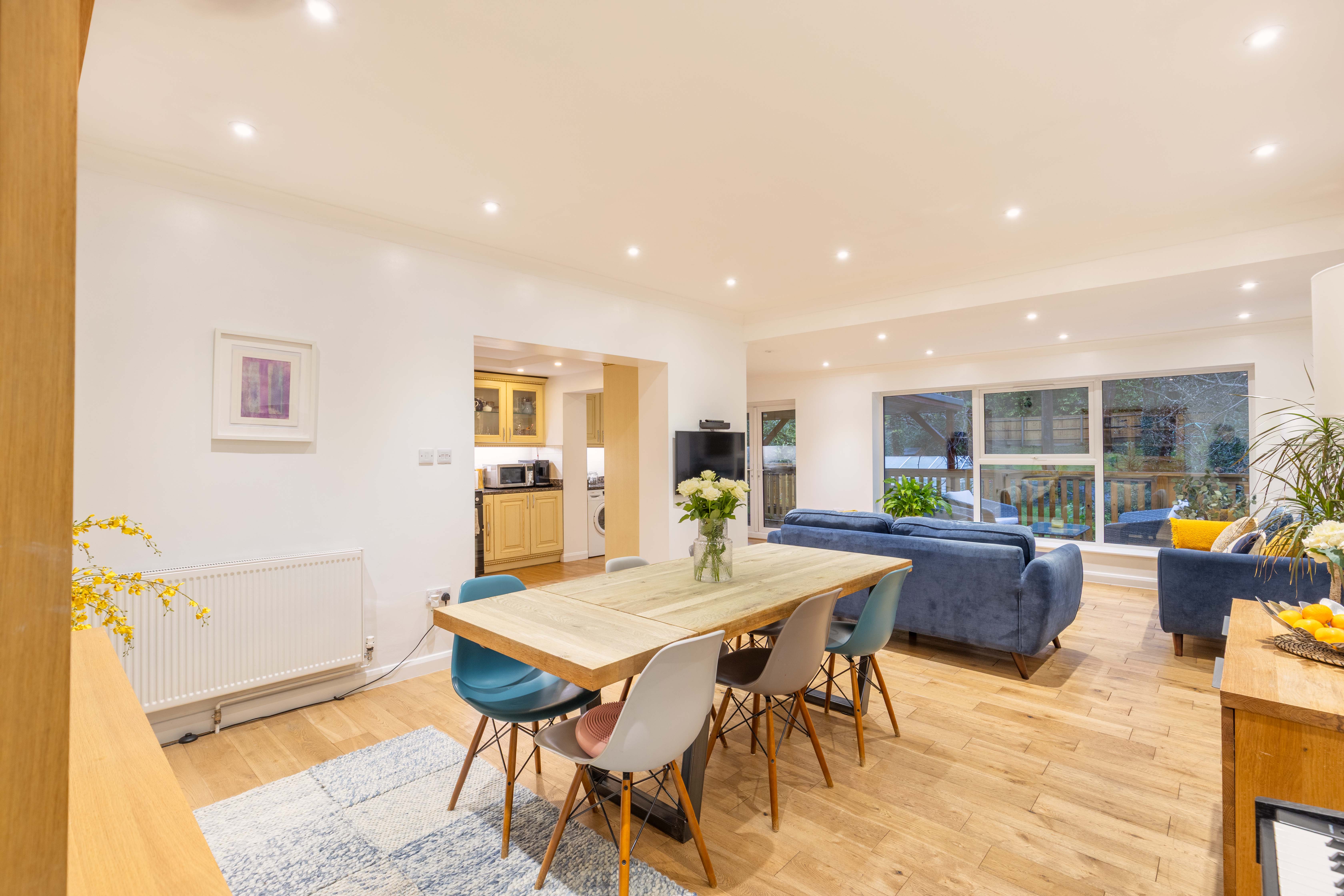 Lovingly maintained and enhanced by the current owners, the house provides versatile and light-filled accommodation, At its heart lies a particularly spacious open-plan kitchen, dining, and living area, designed for both everyday family life and entertaining. Large picture windows frame views of the pretty rear garden, flooding the space with natural light and creating a seamless connection between indoors and out.
