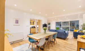 - Generous open plan kitchen, dining and living room with separate utility room, all overlooking the pretty rear garden