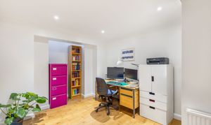 To the front, the home benefits from a private driveway with parking for three to four vehicles, along with a garage—an increasingly rare and valuable feature in such a central location.