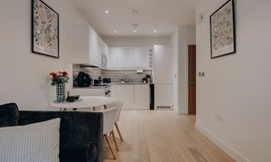 Situated on the ground floor of Atmosphere, a crisp contemporary 2018 build by Montreaux, this one bedroom apartment channels that modern house cereal ad aesthetic. Bright, clean and quietly luxurious. Moments from Bushey Station with London Euston reachable in around 17 minutes and surrounded by greenery, independent cafés, bars and restaurants, it strikes an ideal balance of calm and connection.