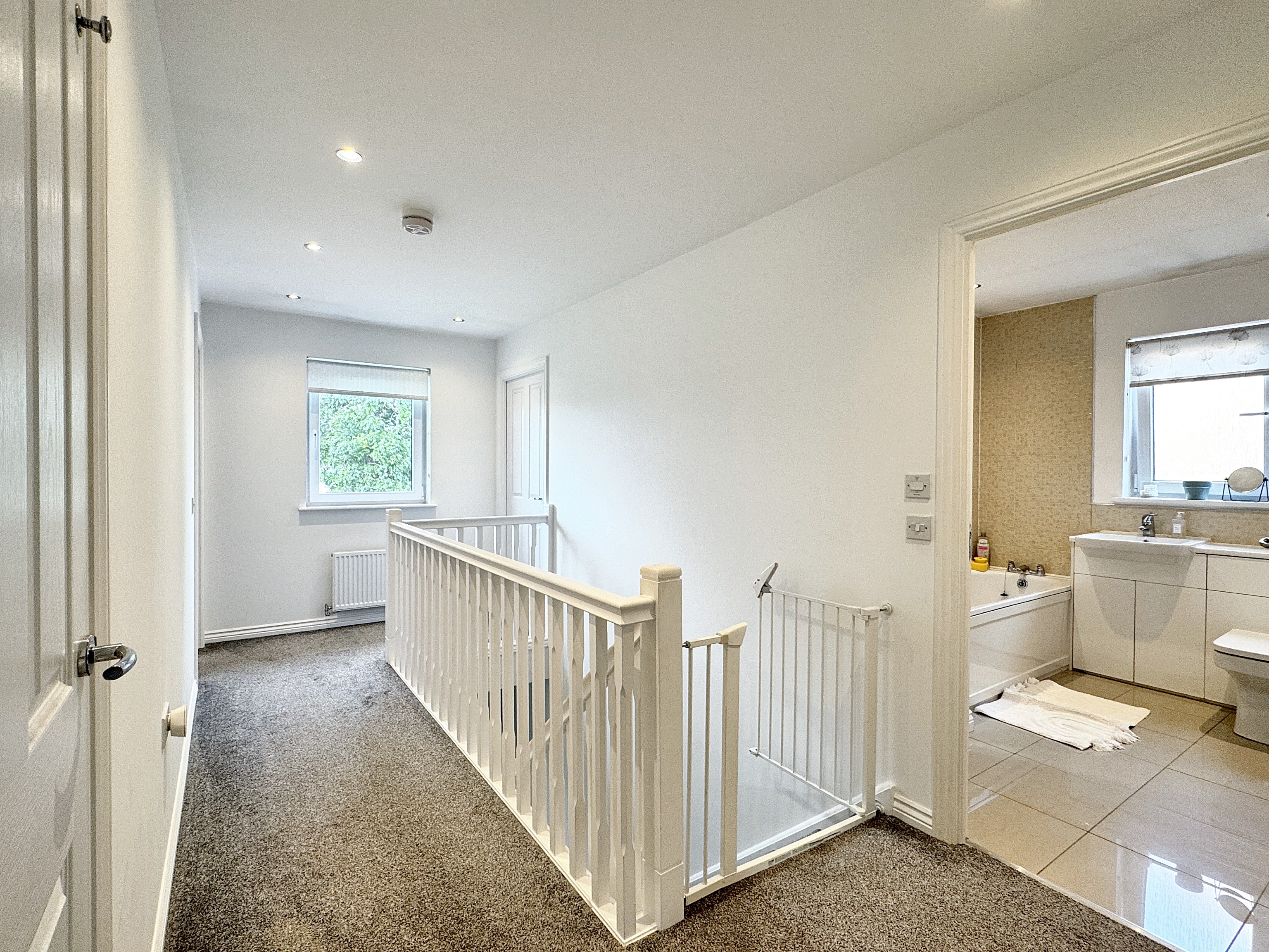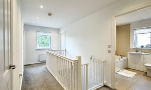 Completing the upper level is a modern family bathroom, presenting a separate shower enclosure and a sumptuous bath, offering a tranquil retreat for relaxation.