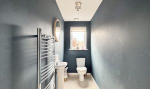 Upstairs, four well-appointed bedrooms provide comfortable accommodation, with the master bedroom boasting the added luxury of fitted mirrored wardrobes and a stylish en-suite bathroom complete with a double shower cubicle and mains powered shower. Additionally, the second bedroom currently serves as a versatile office space, catering to the demands of modern living.