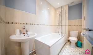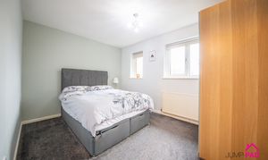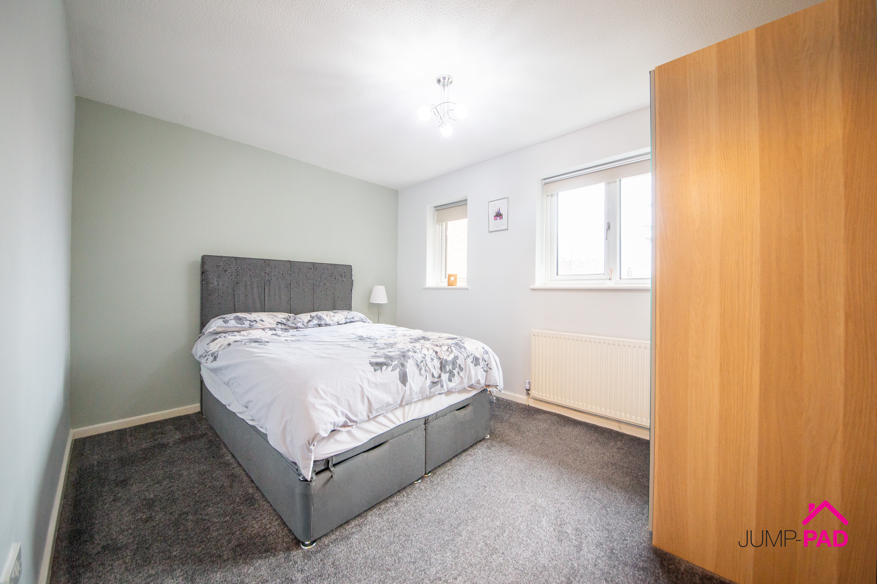 A good-sized double bedroom with two windows to the rear elevation. Complemented by neutral decor and a grey carpet.