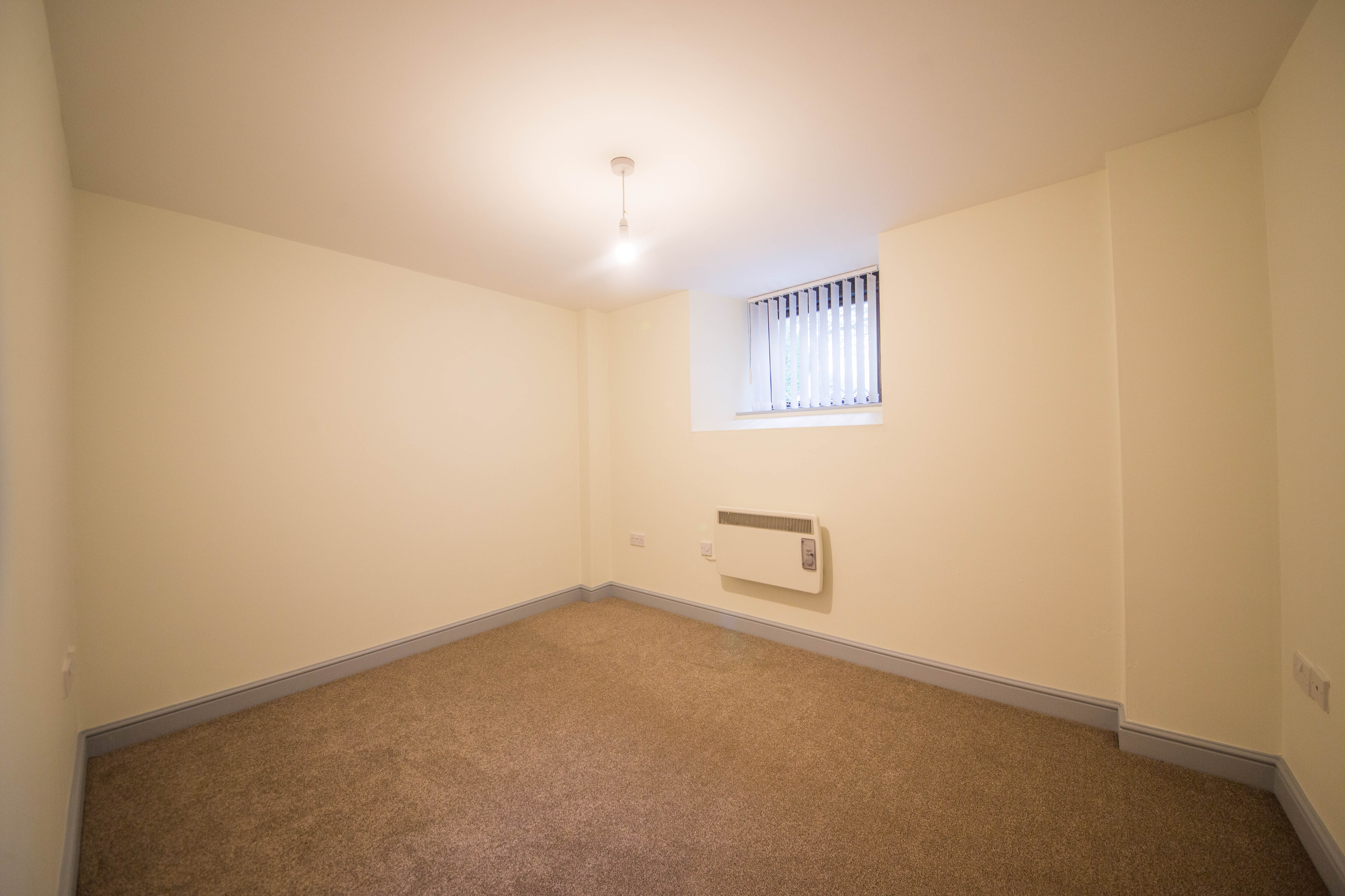 Another good-sized double bedroom, with a beige carpet and neutral decor.