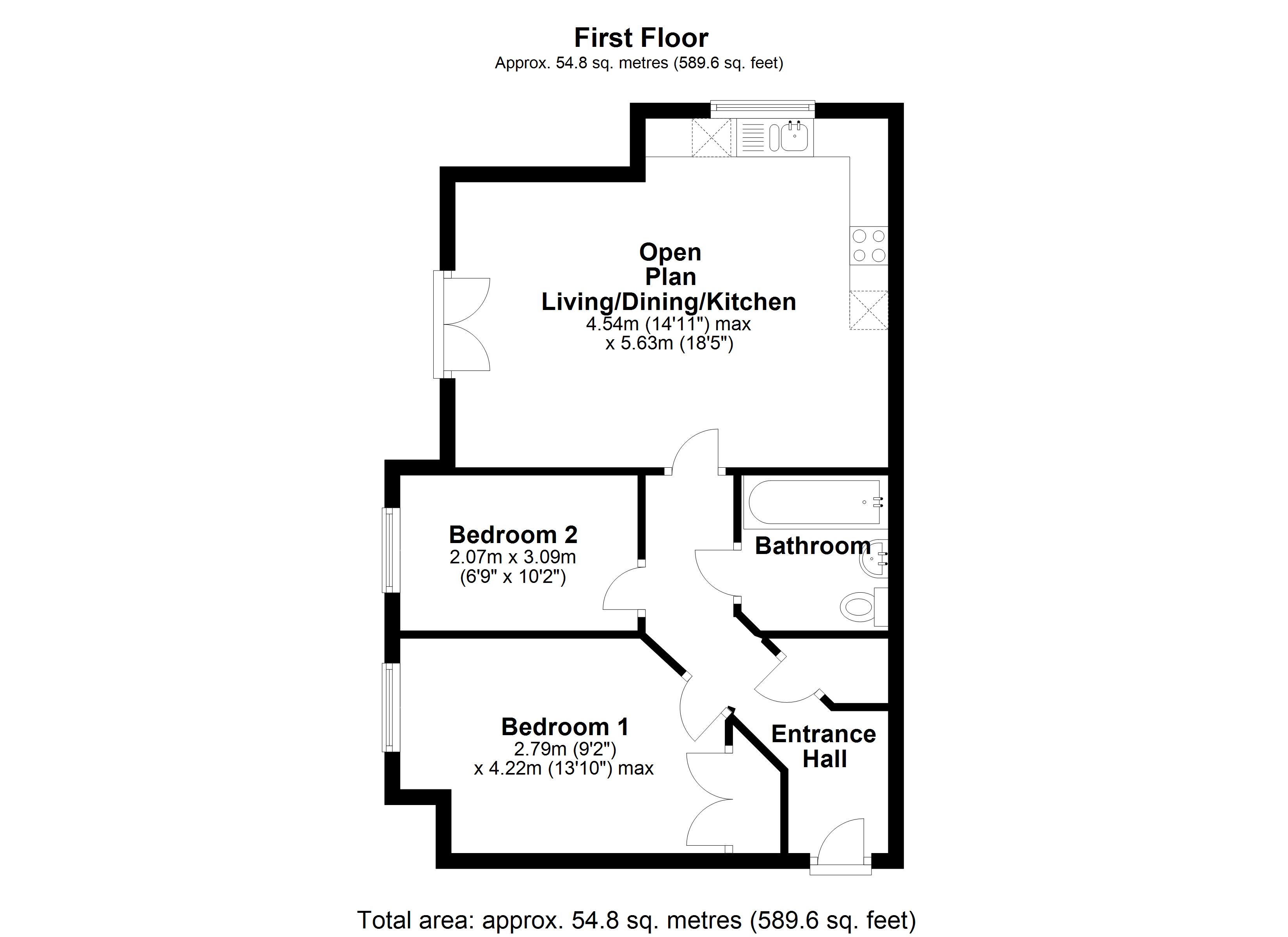 As you step into this inviting residence, you'll be greeted by a spacious hallway offering access to both bedrooms, the family bathroom, and finally the open-plan kitchen/diner/living space. This well-designed layout not only enhances the sense of space but also creates a seamless flow for entertaining or relaxing after a long day. The modern kitchen is equipped with all the essentials, ensuring a delightful culinary experience.