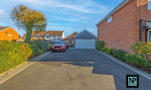 The property has a full width block paved driveway to the front, and gated access to the rear garden and access to the integral garage.