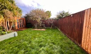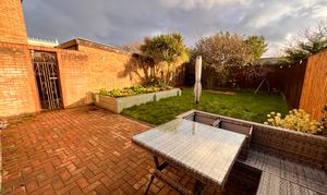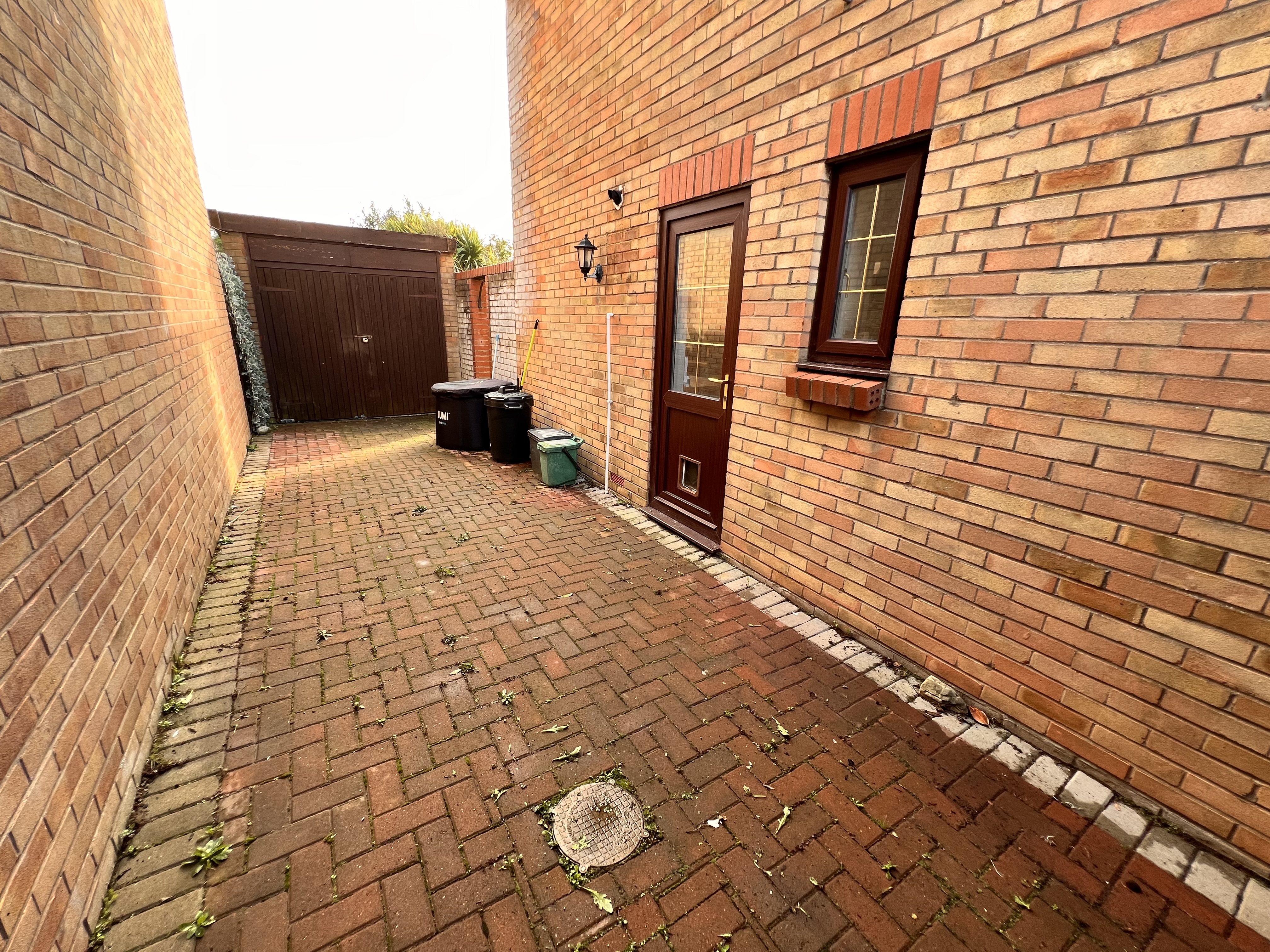 Initially with a sun patio (brick pavior) and this extends to the enclosed side area which is ideal for recycling/storage etc. The remainder is laid to lawn with separate slightly raised patio and well stocked railway sleepered bed. A recessed summerhouse will remain (wooden build and with two windows and entrance door - (7 ft 10 x 7 ft 8).